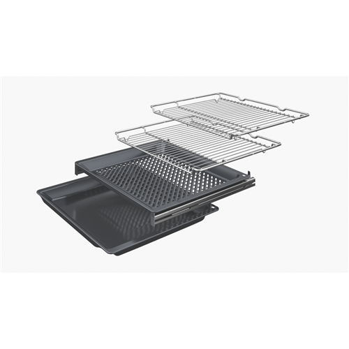 Additional Features Temperature range 30 %26#176;C - 300 %26#176;C, Number of shelf levels: 5, 1 set of level independent telescopic rails (Clip-on rail), pyrolytic proof, fully extendable, safety stop function, Carbon Black Design, Anthracite enamel cavity with 5 shelf positions, Touch