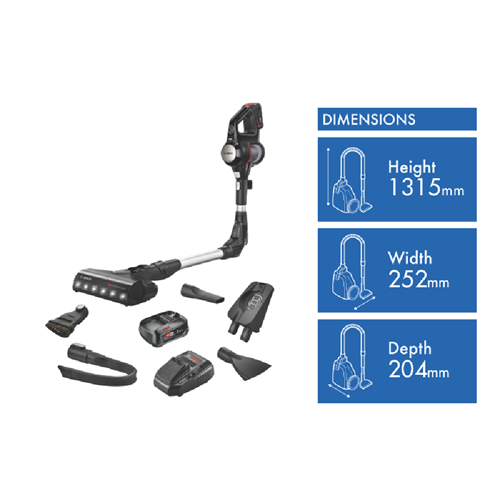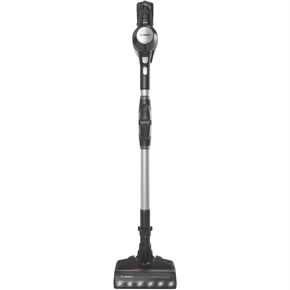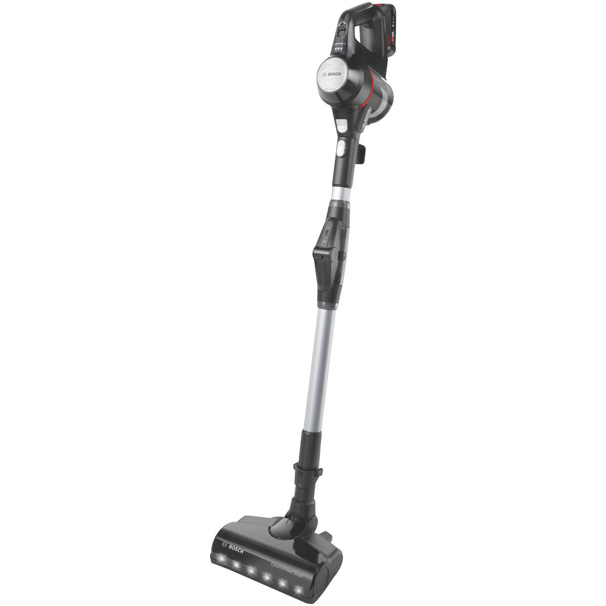 The new Unlimited 7 features an innovative 90° bendable tube for easy and ergonomic cleaning under furniture. Other convenient functions include the LED floor lights the Nozzle Foot Release for an effortless switch to overhead cleaning and the Easy Parking Clip. Enjoy more versatility! The convenient Flex Tube makes it possible to reach places under low furniture effortlessly the Easy Parking Clip lets you securely hold the vacuum in place during breaks and the Quick Stand allows flexible cleaning with the handheld while the nozzle and tube stand by themselves. With the Nozzle Foot Release you can detach the nozzle from the tube without bending over to easily switch to spot cleaning with the practical tube. This makes the Unlimited 7 perfect for cleaning all types of floors and surfaces as well as hard-to-reach areas. With the powerful and enduring 3.0 Ah Power For All battery from Bosch even demanding cleaning tasks can be mastered effortlessly. The lithium-ion battery is rechargeable exchangeable and protected against overheating overcharging self-discharge and memory effect. In addition the battery offers up to 40 minutes runtime(7) for each battery ensuring powerful performance and long runtimes. Enjoy optimal cleaning results on all floors and surfaces and even in the darkest places. With the powerful motorized brush you can achieve dust pickup of up to 99.9%(4). Thanks to the powerful built-in LED lights you can spot and remove dirt and dust even in hard-to-see places like behind furniture or in dark corners. So you can feel comfortable in a clean home in no time. Save time and energy thanks to the Quick Stand function. Switch easily and effortlessly from floor cleaning with the vacuum cleaner to mid-level cleaning with the handheld vacuum cleaner. While cleaning with the handheld the nozzle and tube simply stand by themselves. You don't have to put the vacuum cleaner on the floor or return it to the docking station. Afterwards you simply put the handheld back into the tube and continue cleaning the floor. Different vacuuming tasks require different modes. The vacuum cleaner provides a control interface with 3 power modes for every challenge. Turbo boosts performance for difficult tasks by providing as much performance as a corded vacuum cleaner.(2) The intelligent Auto mode adjusts performance and runtime depending on the floor and surface whether carpet or hard floor. And Eco provides extra-long optimal runtime for everyday cleaning tasks.Disclaimers: (4)Dust pickup measured in Turbo mode on hard floors with crevices. Tested according to EN 60312-1:2017.(3)Terms of guarantee on https://www.bosch-home.com.au/metapages/warranty(4)Dust pickup measured in Turbo mode on hard floors with crevices. Tested according to EN 60312-1:2017.(5)Compared to our previous Unlimited Serie 6 BCS61113AU. Tested according to EN 60312-1:2017.(7)Compared to the 2.5Ah 18V Power For All battery in Eco mode without electrical nozzle from our previous Unlimited Serie 6 BCS6111AU. Tested according to EN IEC 62885-4:2020.(8)Measured in Eco mode internally based on standard EN 60312-1:2017 section 5.1 5.3.(0)Tested according to EN 60312-1:2017.