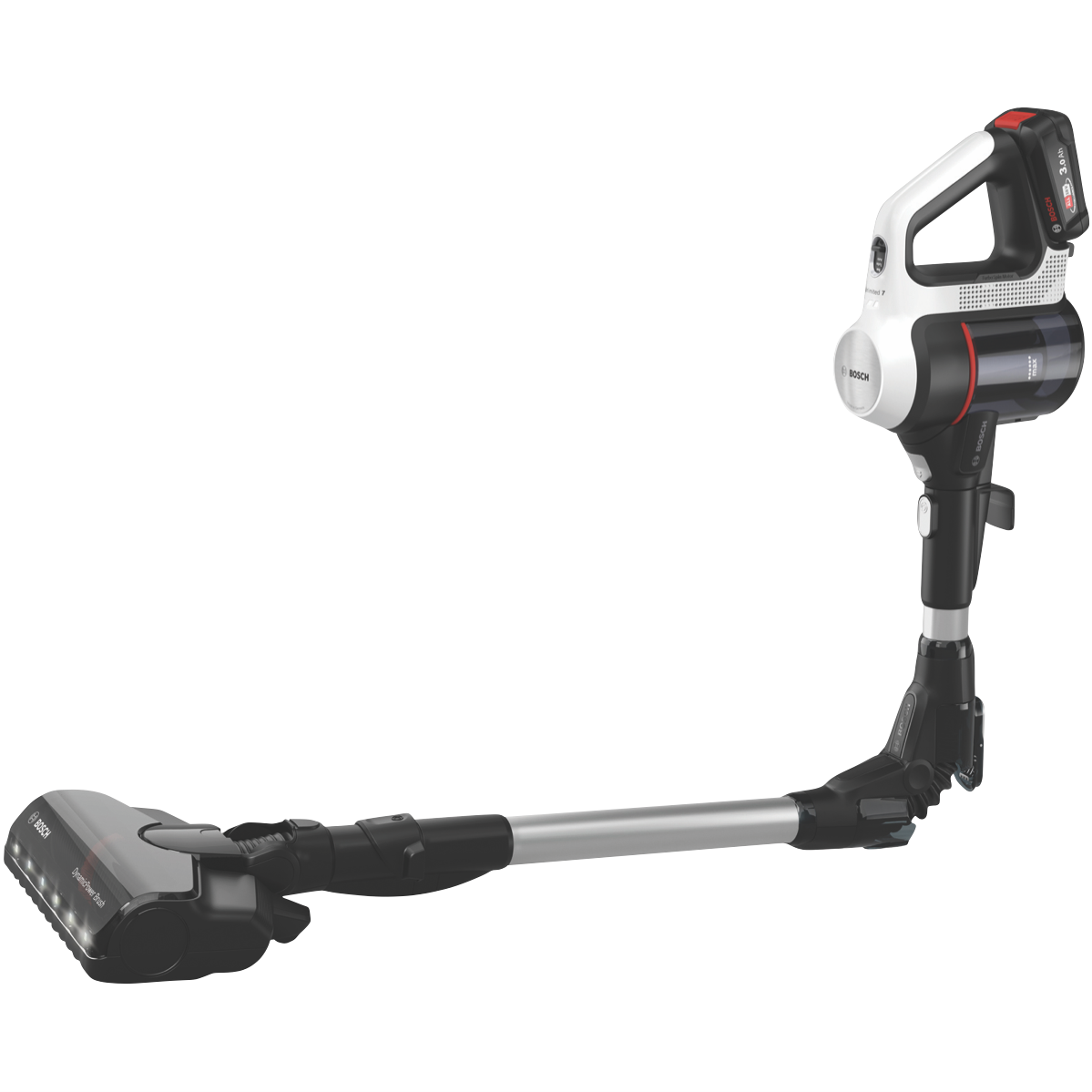 The new Unlimited 7 features an innovative 90° bendable tube for easy and ergonomic cleaning under furniture. Other convenient functions include the LED floor lights the Nozzle Foot Release for an effortless switch to overhead cleaning and the Easy Parking Clip. njoy more versatility! The convenient Flex Tube makes it possible to reach places under low furniture effortlessly the Easy Parking Clip lets you securely hold the vacuum in place during breaks and the Quick Stand allows flexible cleaning with the handheld while the nozzle and tube stand by themselves. With the Nozzle Foot Release you can detach the nozzle from the tube without bending over to easily switch to spot cleaning with the practical tube. This makes the Unlimited 7 perfect for cleaning all types of floors and surfaces as well as hard-to-reach areas.With the powerful and enduring 3.0 Ah Power For All battery from Bosch even demanding cleaning tasks can be mastered effortlessly. The lithium-ion battery is rechargeable exchangeable and protected against overheating overcharging self-discharge and memory effect. In addition the battery offers up to 33% more runtime(7) ensuring powerful performance and long runtimes.Enjoy optimal cleaning results on all floors and surfaces and even in the darkest places. With the powerful motorized brush you can achieve dust pickup of up to 99.9% . Thanks to the powerful built-in LED lights you can spot and remove dirt and dust even in hard-to-see places like behind furniture or in dark corners. So you can feel comfortable in a clean home in no time. Save time and energy thanks to the Quick Stand function. Switch easily and effortlessly from floor cleaning with the vacuum cleaner to mid-level cleaning with the handheld vacuum cleaner. While cleaning with the handheld the nozzle and tube simply stand by themselves. You don't have to put the vacuum cleaner on the floor or return it to the docking station. Afterwards you simply put the handheld back into the tube and continue cleaning the floor. Different vacuuming tasks require different modes. The vacuum cleaner provides a control interface with 3 power modes for every challenge. Turbo boosts performance for difficult tasks by providing as much performance as a corded vacuum cleaner.² The intelligent Auto mode adjusts performance and runtime depending on the floor and surface whether carpet or hard floor. And Eco provides extra-long optimal runtime for everyday cleaning tasks. Disclaimers: Dust pickup measured in Turbo mode on hard floors with crevices. Tested according to EN 60312-1:2017.(3)Terms of guarantee on https://www.bosch-home.com.au/metapages/warranty(4)Dust pickup measured in Turbo mode on hard floors with crevices. Tested according to EN 60312-1:2017.(5)Compared to our previous Unlimited Serie 6 BCS61113AU. Tested according to EN 60312-1:2017.(7)Compared to the 2.5Ah 18V Power For All battery in Eco mode without electrical nozzle from our previous Unlimited Serie 6 BCS6111AU. Tested according to EN IEC 62885-4:2020.(8)Measured in Eco mode internally based on standard EN 60312-1:2017 section 5.1 5.3.(0)Tested according to EN 60312-1:2017.