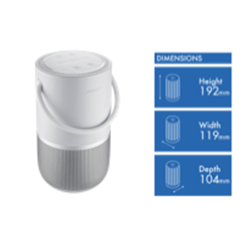 Your music can always accompany you with the Bose Portable Home Speaker 829393-5310. Listen to clear audio when travelling around a room with the highly efficient inbuilt transducer producing rich and precise 360 degree audio. Being small doesn't impact bass quality; three passive radiators increase the total vibrating surface area producing better bass impact. Go on adventures travel or even attend social events with the Bose Portable Home Speaker; the flexible fabric handle durable water-resistant design and 12 hours of battery life keeps the tunes pumping all day. Amazon Alexa and Google Assistant can perform a variety of different tasks when your away from your smart device; send messages check the weather add reminders and more just by using the sound of your voice. Stream your multimedia catalogue of music podcasts audiobooks and internet radios stations just by asking your Bose Portable Home Speaker. With a smart phone or tablet you can play your much-loved music playlists through your favourite music services such as Amazon Music and Spotify. Also you play audio via Bluetooth or AirPlay 2 for Apple device. Sync your audio to play either between multiple Bose Home Speakers or connect a Home speaker to a Bose SoundLink with Bose SimpleSync technology(1). (1) Voice services (Amazon Alexa Google Assistant) may vary and may not be available in all languages and countries.