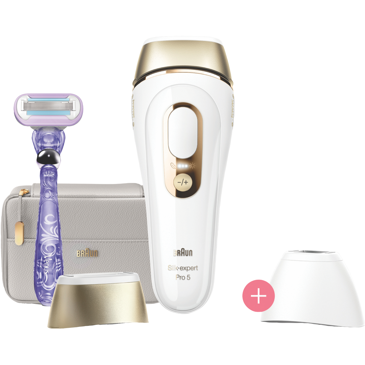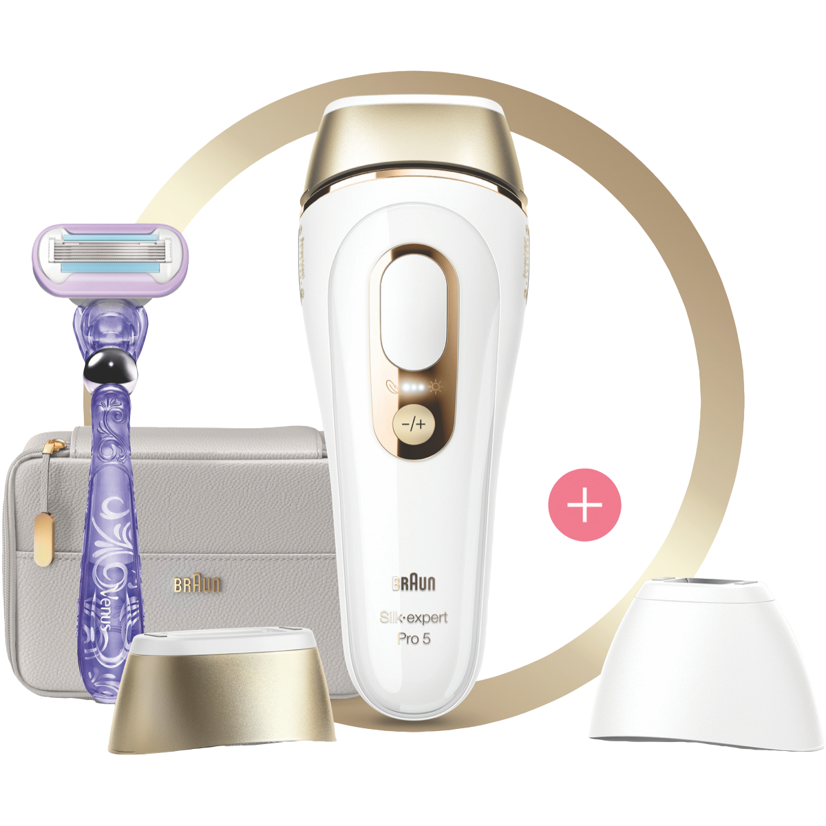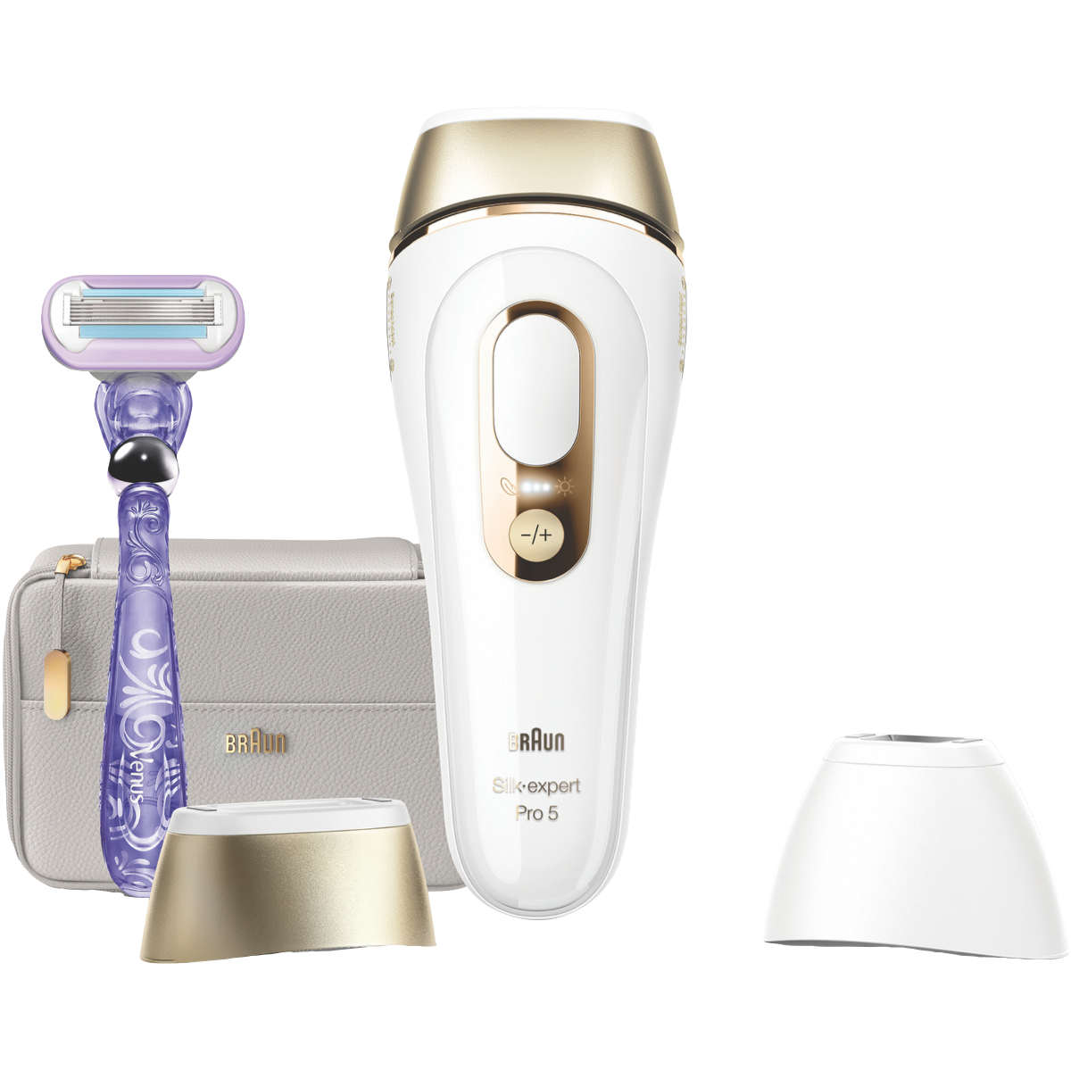 Get smooth hair-free skin in as little as four weeks with the Braun Silk Expert Pro IPL Machine. This advanced hair removal device uses Intense Pulsed Light technology to gently reduce hair regrowth over time suitable for skin tones 1-5. With a built-in SensoAdapt sensor it automatically adjusts light intensity for customized treatments. Treat legs in under 5 minutes and enjoy long-lasting results with 400000 flashes from the durable lamp. 10 energy levels let you tailor sessions from extra gentle to fast. The lightweight corded machine comes in a sleek white finish. Additional features include a Venus Swirl razor and storage pouch. Experience convenient at-home hair removal with this innovative IPL machine from Braun. Backed by a 2 year warranty. The manufacturer's part number for this product is IPL5157. Shop now for permanent hair reduction with advanced IPL technology.