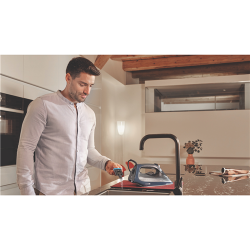 Craft a perfectly pressed shirt and crisp creases with ease using the Braun TexStyle 9 Steam Iron. This powerful 2400 watt iron with EloxalPlus soleplate glides smoothly over all fabrics thanks to the integrated iCare technology. The extra-large 330ml water tank allows longer continuous steam ironing while the steam shot feature provides a burst of steam (up to 260g/min) to tackle stubborn creases. The ActiClean self-cleaning system prevents limescale buildup ensuring optimal performance over time. With a 2.5m cord length and lightweight 1.7kg body maneuvering is made easy. The descaling reminder alerts you when it's time to decalcify. Backed by a 2 year manufacturer's warranty for peace of mind. SI9684DB is the manufacturer's part number of this product. Discover the difference exceptional steam power makes - order the Braun TexStyle 9 today.