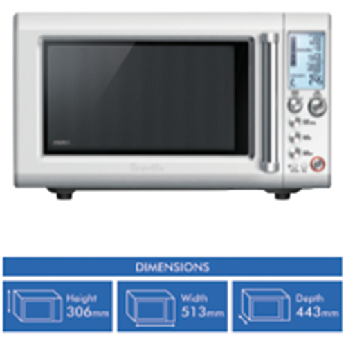 This Breville microwave oven has 900 watts of power. Its 315mm turntable diameter allows you to heat full dinner plates of food. Also the Breville BMO700BSS features 10 power levels so you can avoid under- and over-cooking. You can reheat foods evenly every time with its inverter. The Breville microwave oven has a stainless steel finish. It features a 513mm width a 306mm height and a 443mm depth. Quickly warm up food thanks to this Breville microwave oven.