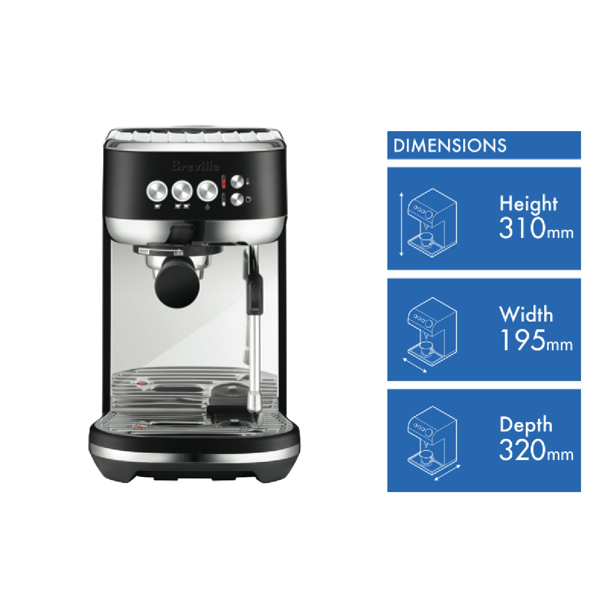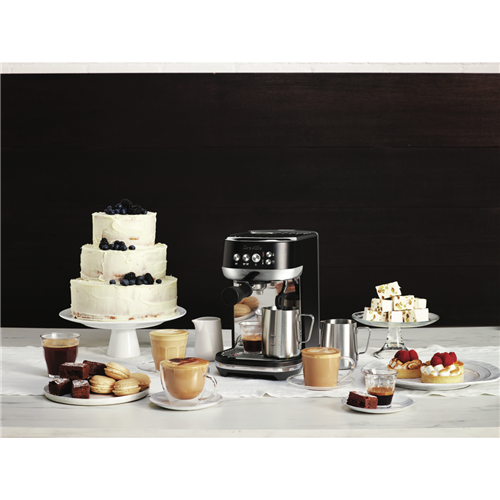 Start your day the right way with barista quality coffee that's quick and easy to make thanks to this compact Breville Bambino Plus BES500BTR4JAN1 espresso machine. In just three seconds the innovative ThermoJet heating system reaches the perfect temperature needed for precise espresso extraction while an automatic steam wand gives you control over the milk temperature and texture so you can re-create delicious microfoam just like at your local cafe. The Breville BES500BTR4JAN1 has a 54mm porta-filter that precisely holds 19 grams of ground coffee for a full-bodied balanced espresso and a well-designed low-pressure pre-infusion that draws out flavours evenly during the extraction phase for a delicious-tasting cup of coffee. Use freshly ground coffee from your local cafe or roaster or you can grind your own roasted beans using a coffee grinder (sold separately). This Breville coffee machine features a stunning matte black design with chrome detailing to bring an air of sophistication and style to coffee-making time. Get creative with your latte art and enjoy cafe quality cappuccinos and more with Breville's Bambino Plus espresso machine.