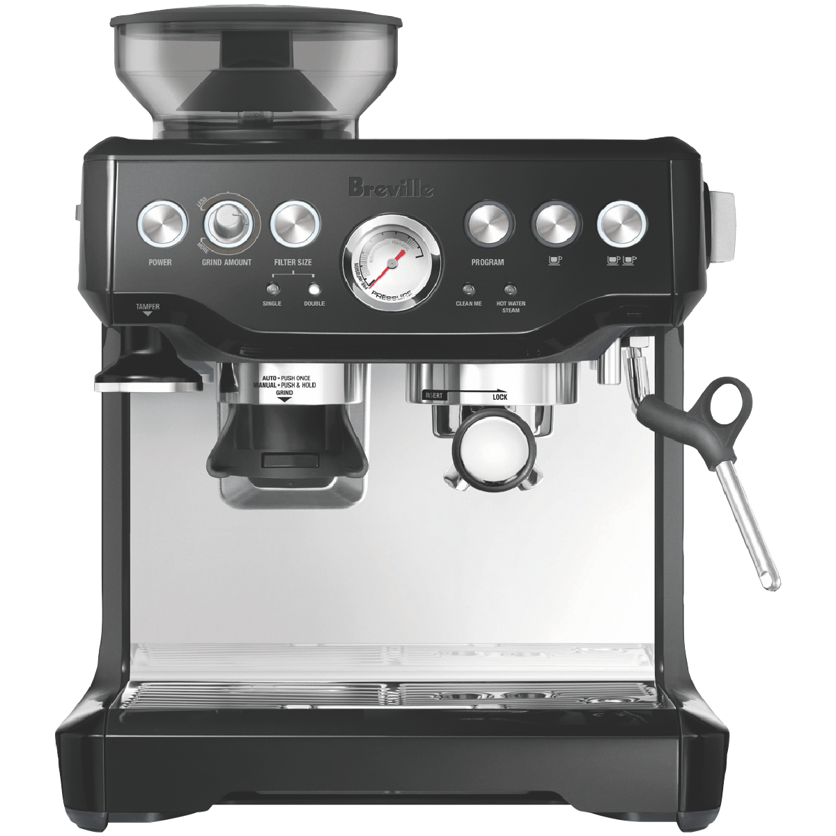 This Breville coffee machine's espresso maker lets you make speciality coffees in your own home. It features a 2 litre capacity. Also the Breville BES870SLQ features a steam wand so you can produce frothy milk for cappuccinos and macchiatos. It has a grinder and a frother. Serve up mugs full of hearty stimulating coffee with the Breville coffee machine's 2 cup brewing capacity. You can take it easy on your budget by making your own coffee with help from this Breville coffee machine.
