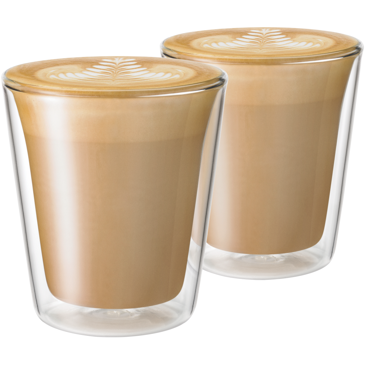 Brew cafe-quality lattes and cappuccinos at home with the Breville Latte Duo Wall Glass. These two sleek heat-resistant borosilicate glasses feature silicone valve lids that equalize air pressure for mess-free pouring. Dishwasher safe and suitable for the microwave freezer and oven these barista-approved vessels help you craft creamy espresso drinks just like your favorite coffee shop. The glasses' clear design beautifully displays layered beverages while keeping contents insulated. Whip up lattes flat whites mochas and more without leaving your kitchen. These glasses are perfect for the coffee connoisseur who wants to enjoy premium beverages in style. Their versatile durable construction stands up to daily use. The manufacturer's part number for this product is BES046CLR0NAN1. Check out the Breville Latte Duo Wall Glass to make cafe favorites at home.