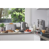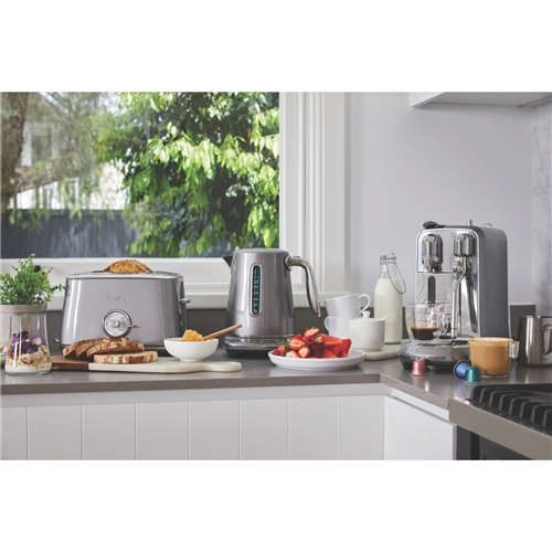 This Breville the Toast Select Luxe is a compact 2-slice toaster with quick and convenient features that help you perfect your morning toast with little effort. It cleverly adjusts the toasting time for each type of bread - just select from White Brown Grain Fruit Rye and Crumpet auto settings and the rest is taken care of for you. The Breville Luxe BTA735SHY easily handles larger pieces of bread thanks to the extra wide toasting slots. It has an 'A Bit More' button for extra toasting time if your toast comes up too light a browning control slider for toast your way and a 'Lift & Look' lever to check progress without interrupting the toast cycle. Plus this Breville toaster has an LED progress indicator and a sound alert for when your toast is ready. In a timeless smoked hickory colour with premium metallic finishes and chrome accents this incredibly versatile toaster also brings effortless style to your kitchen bench.