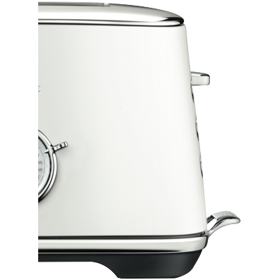This compact Breville the Toast Select Luxe is a 2-slice toaster in sea salt matte white to bring a touch of luxury to your kitchen bench. It cleverly adjusts the toasting time for each type of bread - select from White Brown Grain Fruit Rye and Crumpet and the Breville Luxe BTA735SST4JAN1 takes care of the rest for you. The slots are extra wide and deep to accommodate larger pieces of bread without a worry. It has an 'A Bit More' button for extra toasting time if your toast comes up too light a browning control slider for toast your way and a 'Lift & Look' lever to check progress without interrupting the toast cycle. This Breville toaster BTA735SST4JAN1 has an LED progress indicator a sound alert when your toast is ready and cord storage integrated into the base to keep things clutter-free. Constructed in brushed stainless steel with premium metallic finishes chrome accents and back-lit buttons this stunning toaster is about toasting versatility and style in one.