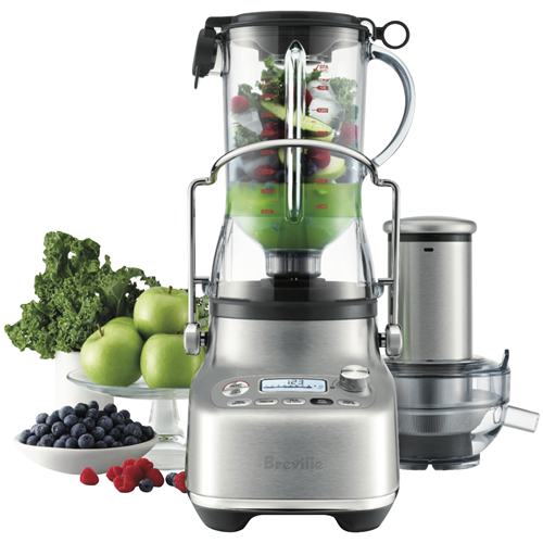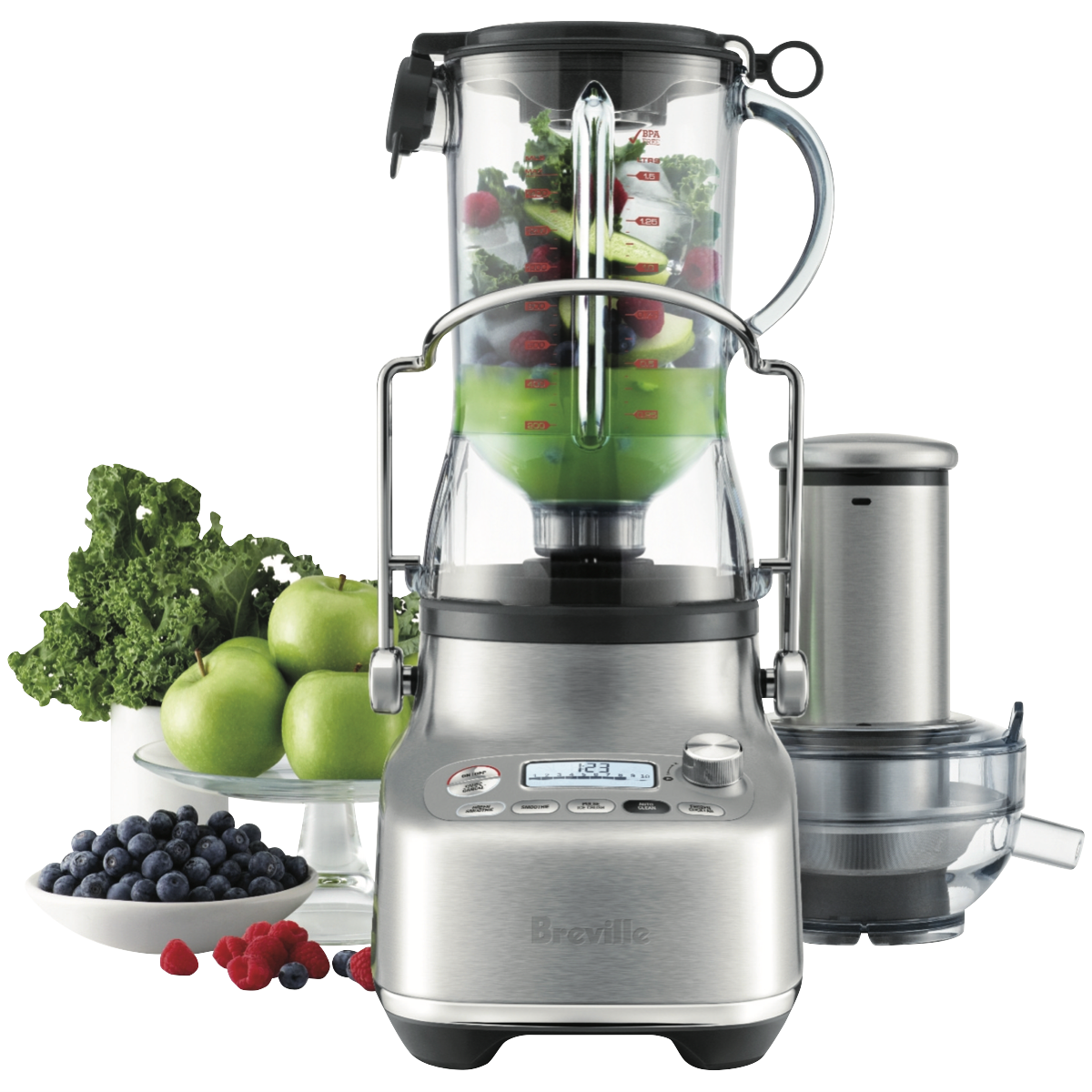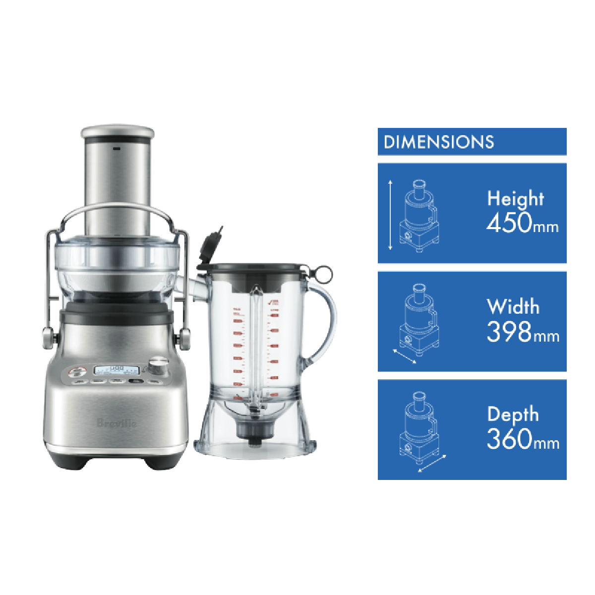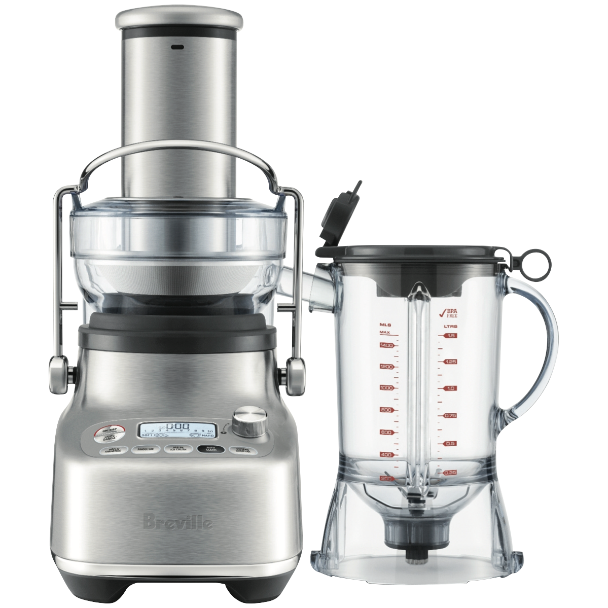Get your daily dose of fruit and vegetables with this Breville 3X Bluicer Pro BJB815BSS. The Bluicer combines a Juicer and a Blender to save space on your bench. With the Breville Kinetix bowl and blade system you get the functionality of a blender and a food processor to ensure versatility and convenience. Cold Spin Technology controls temperature increases to keep your juice cool so you can enjoy refreshing juice on hot summer days. 10 speed settings and five 'One Touch' programs give you extra control over the functionality of your machine. Plus the extra-large feed chute means you can juice faster with fewer trips to the bin using the 3L large pulp bin container. The Blucier Pro comes with recipe cards so you can get juicing blending or bluicing straight away - creating fresh juices smoothies cocktails and more!