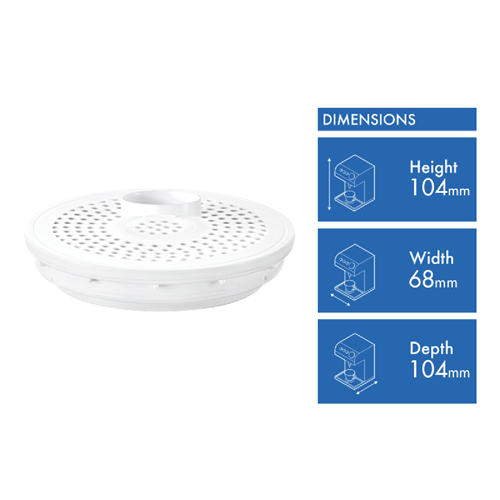 Enjoy clean refreshing water with the Breville Activ360 Filter. This innovative 4-stage filtration system in white purifies tap water in as little as one minute producing up to 1.3 litres of filtered water for your daily hydration needs. The pre-sediment mesh filter captures microplastics and particles while the ion-exchange resin filter reduces limescale and metals. With a filter life of 90 days or 200 litres whichever comes first this water filter delivers conveniently filtered water for all your cooking and drinking. Measuring 104mm long by 68mm wide by 104mm high and weighing just 50 grams the compact Activ360 Filter fits most fridge doors. Savour contaminant-free water with improved taste and clarity. Breville's filtration technology removes chlorine and its by-products for refreshingly clean water. The Activ360 makes water filtration simple. Just replace the filter every 90 days and enjoy fresh filtered water on demand. With convenient installation and effortless maintenance this water filter delivers premium performance. Refresh and rejuvenate with filtered water from Breville's Activ360. The manufacturer's part number for this product is LWA063WHT0ZAN1.