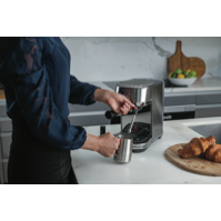 Create cafe quality cappuccinos caffe lattes or long or short blacks from the comfort of home without taking up much bench space with this compact Breville Bambino Plus espresso machine. The precise Bambino Plus 19-gram dose capacity and 54mm porta-filter ensures full bodied cafe quality flavour with just the right amount of ground coffee for a balanced espresso while the low-pressure pre-infusion draws out flavours evenly during the extraction phase for a perfectly balanced tasting cup of coffee. Plus with precise PID digital temperature control water is delivered at the precise temperature required for optimal espresso extraction. Use the automatic steam wand and included milk jug to texture your way to barista quality micro-foam for a cappuccino just like at your local cafe. The Breville BES500BSS4JAN1 offers a super-fast 3 second heat up time thanks to the innovative ThermoJet heating system that reaches optimum extraction temperature so you don't have to wait. Use freshly ground coffee from your local cafe or roaster or you can grind your own roasted beans using a coffee grinder (sold separately). By combining all the elements needed for a deliciously balanced brew any day is off to a great start with your favourite caffeinated beverage at home with Breville's Bambino Plus.