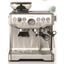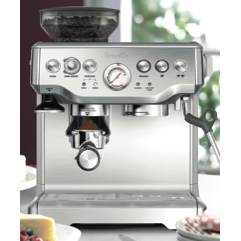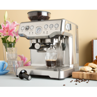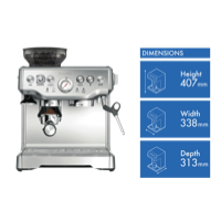 Kick start your day with cafe-quality coffee from the comfort of home with this stainless steel Breville the Barista Express BES870BSS - the perfect coffee machine for both beginner baristas and more experienced coffee makers. Simply add your favourite roasted beans to the bean hopper then press a button to let the machine grind and dose your portafilter with the right amount of freshly grounded coffee for a delicious tasting brew. Select your preferred cup volume and the machine's automatic dosing will dispense the required amount of coffee. It has an adjustable grind size dial for coffee your way. To create cappuccino flat white or latte use the steam wand to texture and heat the milk to a silky-smooth consistency. This Breville espresso machine uses preinfusion to gradually increase water pressure to gently expand grinds for even extraction. Plus it automatically adjusts the water temperature after steam for optimal espresso temperature. You can experience an authentic tasting espresso or milky coffee favourite with this Breville the Barista Express coffee machine.