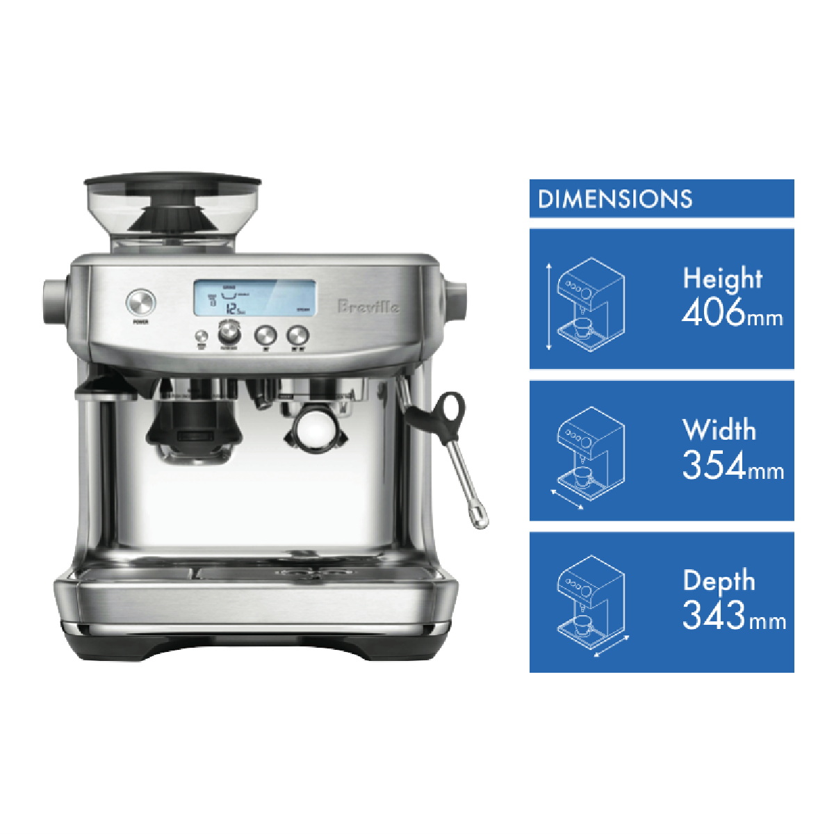 This Breville coffee machine has an espresso maker so you can brew speciality coffees easily. It has a brushed stainless steel finish a grinder and a frother. Also savour cups and cups of aromatic delightful coffee with the Breville BES878BSS4JAN1's 2 cup brewing capacity. Its built-in water filter allows you to enjoy the benefits of purified water. This coffee machine is a smart option for preparing sensational coffee with minimal effort.