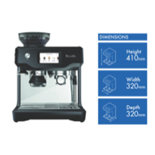 Take your home barista skills to new levels with the Breville The Barista Touch. This sleek manual espresso machine delivers café-quality coffee drinks with ease thanks to its intuitive touchscreen and precise extraction. With a powerful 1680W ThermoJet heating system you'll go from bean to cup in no time. Simply select your drink of choice from the menu and let The Barista Touch do the work. Its 15 bar Italian pump ensures optimal flavor extraction and microfoam milk texturing for velvety lattes and cappuccinos. Adjust grind size shot temperature and volume to customize each beverage to your taste. The built-in conical burr grinder with dose control grinds beans right before extraction for incredibly fresh full-bodied espresso. With a 2L removable water tank 250g sealed bean hopper precise PID temperature control and hands-free auto steam wand this machine takes the guesswork out of making café favorites at home. Cleaning and maintenance are straightforward with included accessories like a stainless steel jug cleaning disc and tablets. Bring the café home with The Barista Touch. Its sleek black truffle color and compact size fit perfectly on your kitchen counter without taking up too much space. The manufacturer's part number for this product is BES880BTR. Discover barista-quality coffee drinks with The Barista Touch.
