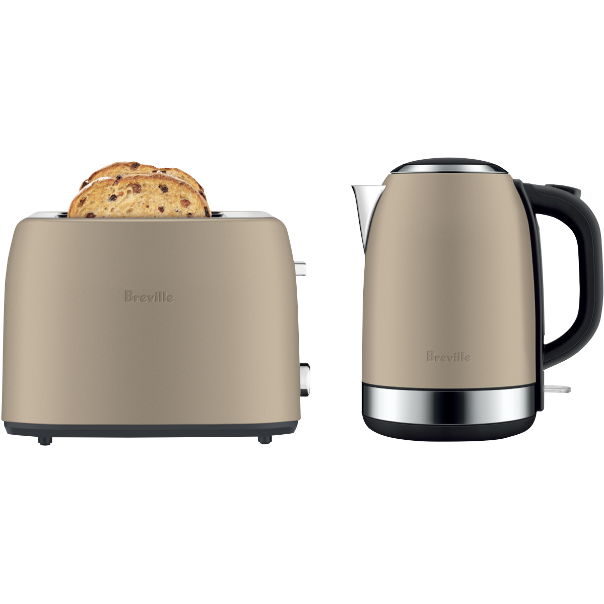 Brighten up your mornings with Breville's Breakfast Pack in a sleek champagne finish. This dynamic duo features a 2-slice toaster with wide slots a high lift lever and handy settings like cancel reheat and defrost. The 1.7L kettle boasts rapid boil technology a removable scale filter and auto shut-off for your safety and convenience. Both appliances have concealed cord storage to keep your countertop tidy. With 900 watts of power and a 1-year warranty the LKT640CMP set is ready to kickstart your day in style.