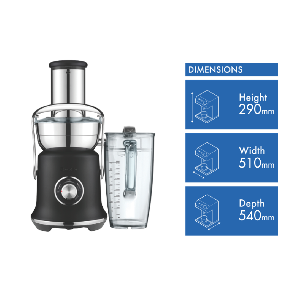 Take your juicing game to the next level with the Breville The Juice Fountain Cold XL. This powerful juicer features Cold Spin Technology and innovative features like a 2L Seal and Store Jug to keep juice fresher for longer. With a heavy-duty 1500W motor and titanium reinforced cutting disk this juicer powers through fruits and vegetables with ease. The extra wide chute minimizes preparation time while the variable speed settings let you fully customize your juicing. Enjoy juice that's nutrition-rich and full of flavor bottled up in seconds thanks to the incredible extraction power. This sleek juicer will be the centerpiece of your kitchen with its durable stainless steel design. Quieter than your average juicer thanks to noise reduction technology you can juice anytime without disruption. Convenient and easy to use the safety lock and elevated juicing system prevent messes. Say goodbye to chopping and hello to more time enjoying deliciously fresh cold juice. This Breville juicer comes with a 2 year warranty providing the ultimate juice solution for health-conscious cooks. The manufacturer's part number for this product is BJE830BTR2JAN1. Bring the juice bar experience home with the Breville Cold XL.