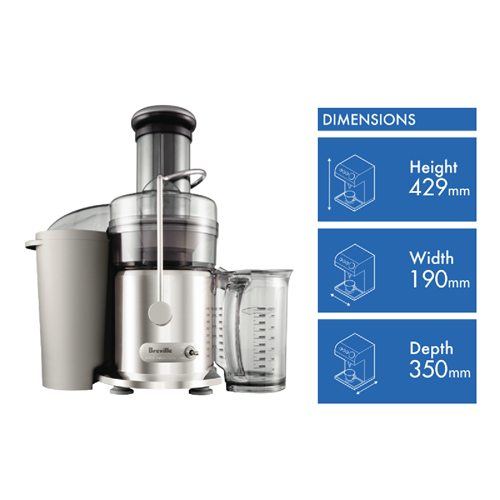This Breville the Juice Fountain Max BJE410CRO makes juicing a breeze with the extra wide feed chute and filter designed so you can juice whole fruits and vegetables. The extraction system has a stainless steel reinforced micro mesh filter created to retain nutrients so you get all the benefits of fresh juice while separating juice and froth with a built-in froth separator. With minimal effort you can reap the benefits of fresh produce with this Breville juicer.
