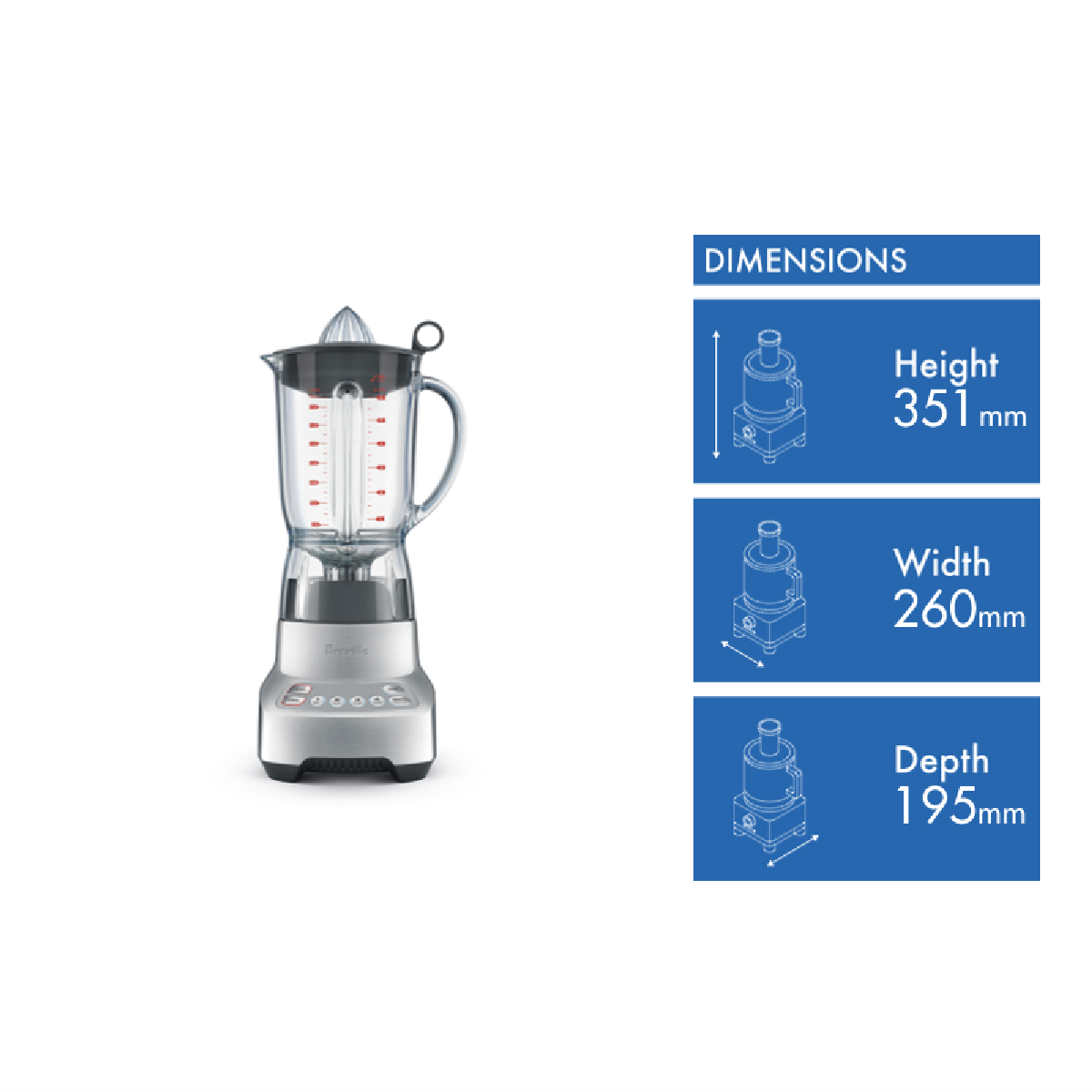 Materials Heavy Duty Die-cast Metal Base, Stainless Steel Blades, BPA-Free Tritan Jug, Tight Fitting Breville Assist Lid.