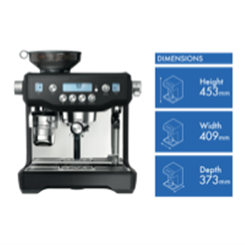 The Breville Oracle Coffee Machine in Black Truffle is a masterful manual espresso machine that will take your home brewing to barista-quality levels. With a triple heating system providing optimal temperature control fast heat-up and simultaneous espresso extraction and milk texturing you can craft café-worthy beverages with ease. The integrated conical burr grinder with dose control delivers the perfect amount of freshly ground beans every time. With a striking design and intuitive controls this all-in-one machine makes it simple to pull rich full-bodied espresso shots and silky microfoam milk textures. Whether you prefer short blacks or long lattes the Oracle Coffee Machine brings the café experience home. Crafted for coffee aficionados who want total bean-to-cup control this machine takes the guesswork out of brewing. The manufacturer's part number for this product is BES980BTR2JAN1. Discover how the Oracle can help you make barista-quality coffee drinks with ease.
