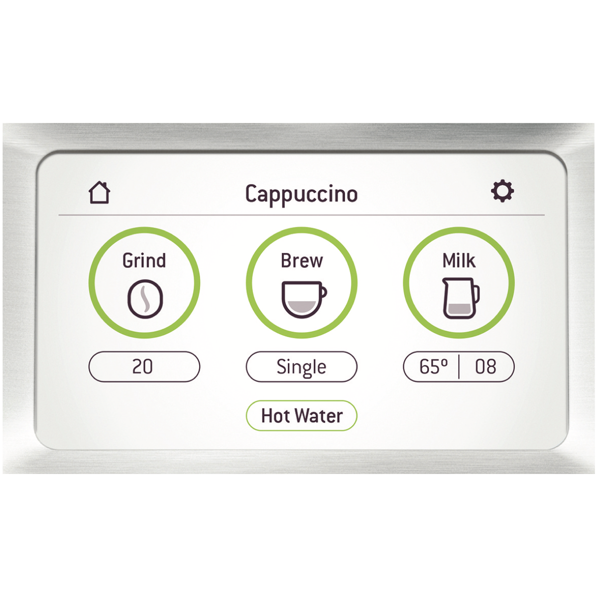 Additional Features Auto Grind, Auto Dose, Auto Tamp, Programmable Milk Temperature and Texture, Touch Screen, 5 Customisable Coffee Settings, Timer, Adjustable Grind Control, Dedicated Hot Water Outlet, Pre Infusion Function