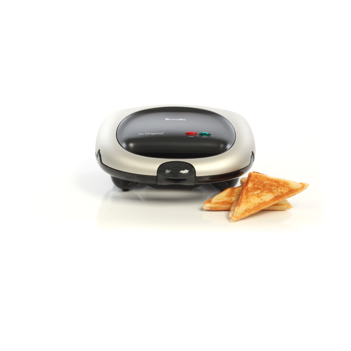 Bring home the taste of a classic Aussie brekkie with the Breville The Original Sandwich Maker. This 1000W jaffle maker features a sleek black and silver design that looks great on any kitchen counter while standing upright for convenient storage. Its PFOA-free non-stick coating allows for easy cleaning while the scissor action seals and cuts your toastie in half for perfect golden-brown results every time. With an adjustable height control you can cater to different fillings and the integrated 'On' and 'Ready' indicator lights let you know when it's time for the first bite. Quickly make delicious toasted sandwiches for the whole family and enjoy dinnertime favourites like ravioli toasties too. From savoury to sweet this 2-slice sandwich press delivers fast even heating and delicious results. The manufacturer's part number for this product is BTS200SIL. Bring home the one and only Breville sandwich maker for quick weekday breakfasts and weekend brekkie cook-ups.