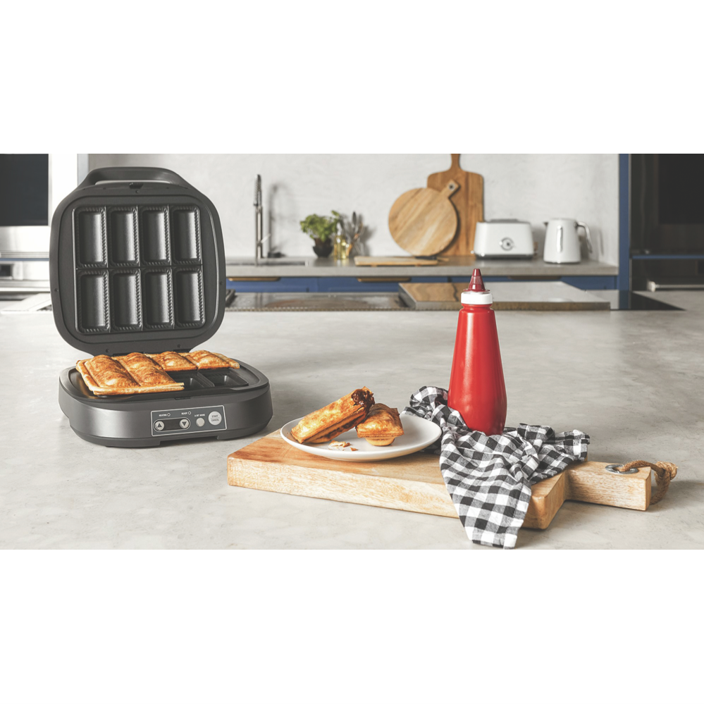 Create perfectly golden pies and quiches in minutes with the Breville The Quick and Easy Pie Maker. This sleek grey pie maker allows you to effortlessly bake up to 8 personal sized pies or quiches in one go. With a durable stainless steel construction and 2000W of power it heats up fast and cooks evenly for delicious results every time. The easy to use touchscreen gives you precise control over cook times up to 30 minutes while the auto-off function provides added safety and convenience. Thanks to the clever snap and seal plates filling and assembling your pies is a breeze. Simply line the bottom plate with pastry fill with your choice of savoury or sweet ingredients top with more pastry snap shut and you're ready to bake. The integrated LEDs indicate when your pies are ready so there's no guesswork involved. Non-stick plates make serving your freshly baked pies effortless and the cool touch handle ensures safe handling. Clean-up is easy too as the plates are PFOA-free and dishwasher safe. Start creating mouthwatering mini pies and quiches for the whole family with the versatile Breville Pie Maker. The manufacturer's part number for this product is LPI285GRY2IAN1. Check it out today.