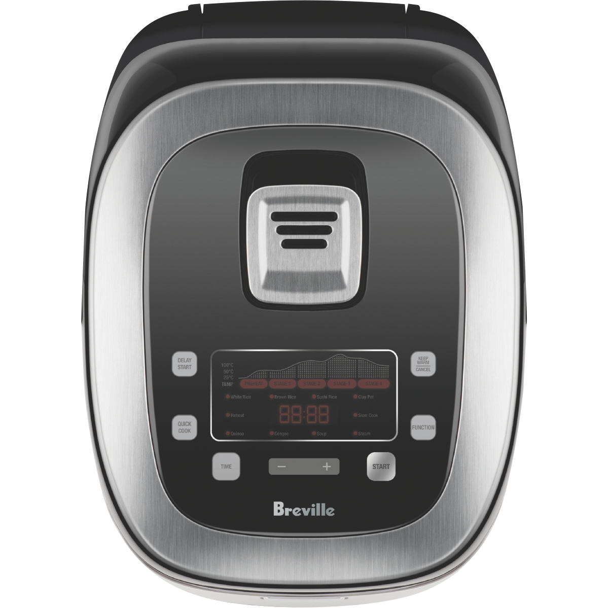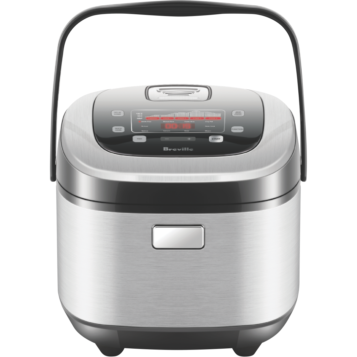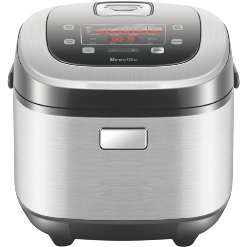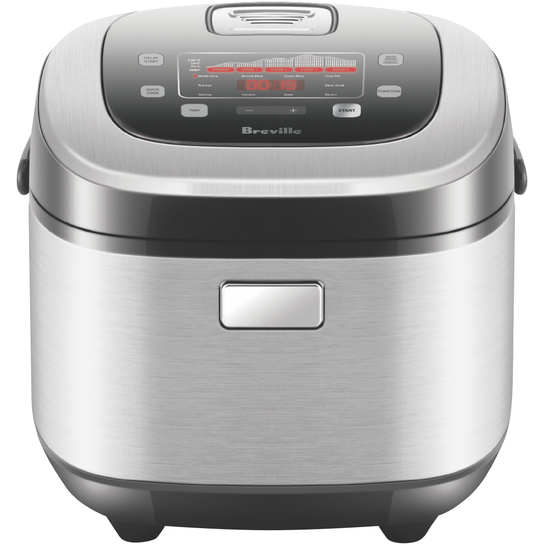 Cook perfect rice every time with Breville's Rice Box Induction Cooker. This 10-cup capacity appliance features smart Fuzzy Logic Technology that adjusts cooking time and temperature for consistently great results. Choose from 9 cooking functions including White Rice Brown Rice Sushi Rice Clay Pot Slow Cook Steam Soup Congee and Quinoa. The handy Rice Cooking Progress Display shows a countdown when there's 15 minutes remaining while 4 additional functions (Reheat Quick Cook Keep Warm and Delay Start) add convenience to your kitchen routine. Comes complete with a stainless steel steaming basket measuring cup and rice spoon. Backed by a 1 year warranty. Model number: LRC800BSS2IAN1.