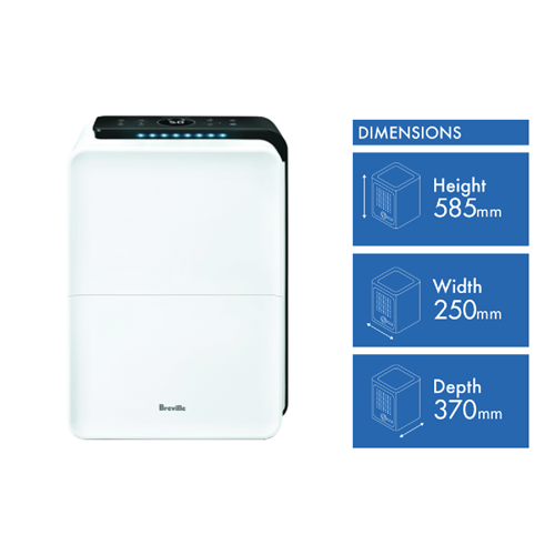 Extract the extra moisture in the air with The Smart Dry Ultimate Dehumidifier by Breville. The LAD500WHT features The Sensair System that automatically keeps the humidity in your comfort zone by setting the appropriate level and allowing the dehumidifier to do the rest of the work depending on room temperature. Plus the humidity indicator identifies the level of humidity in the air so that you can adjust accordingly. This Smart Dry Dehumidifier has a three-stage air filtration: a pre-filter carbon filter and air filter that reduces dust pet dander odours and smoke as well as airborne particles and any other allergens so that the air you breathe is cleaner. Plus this dehumidifier has laundry mode that assists with drying wet clothes faster when hanging them indoors. Enjoy cleaner air with The Smart Dry Ultimate Dehumidifier by Breville.