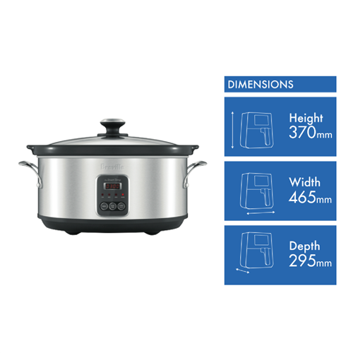 Craft flavorful home cooked meals with ease using the Breville The Smart Temp 6L Slow Cooker. This stainless steel slow cooker features a generous 6 liter capacity perfect for cooking stews roasts soups and more for the whole family. The brushed stainless steel exterior and dishwasher safe glass lid add sleek style to your kitchen. Inside the natural ceramic cooking bowl gently distributes heat and seals in moisture for tender juicy results. With an array of smart settings including Low Medium High and Keep Warm you can perfectly tailor cooking times to suit different recipes. The digital display and timer let you program cooking up to 10 hours in advance. For added convenience there's even a removable cord so you can bring your slow cooked meal straight to the table. The built-in IQ Temperature Sensor takes the guesswork out of slow cooking. It constantly monitors your food as it cooks preventing overcooked or undercooked meals. Enjoy set-and-forget simplicity knowing your food will turn out just right every time.Bring out the rich robust flavors in all your favorite recipes with the Breville The Smart Temp 6L Slow Cooker. The manufacturer's part number for this product is BSC420BSS. Check out this innovative slow cooker today for delicious home cooked meals with no fuss or hassle.