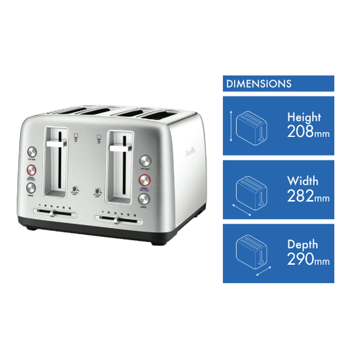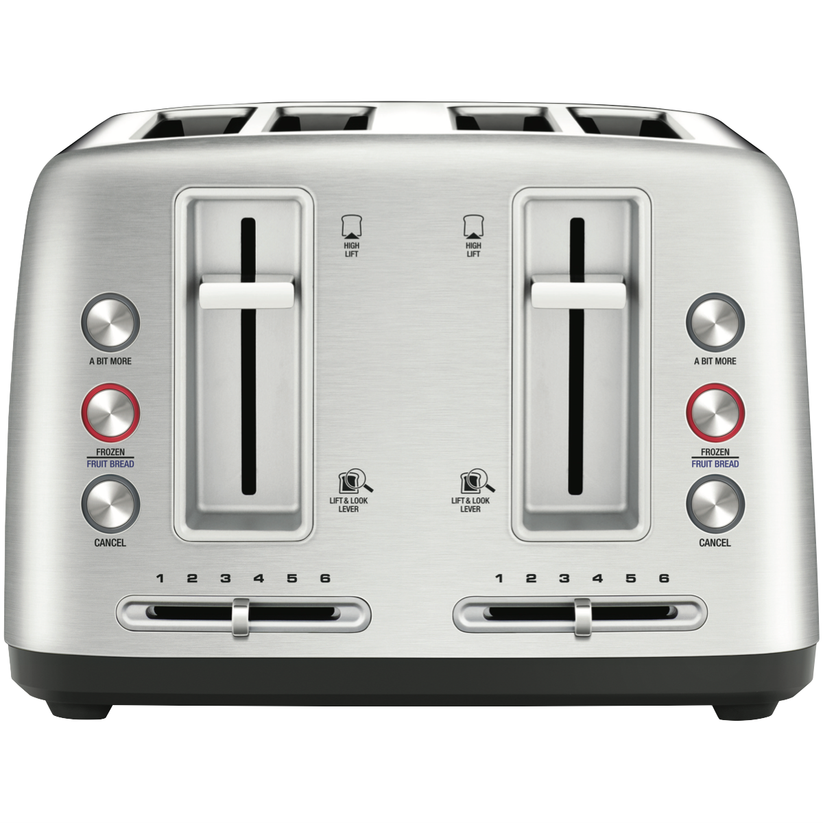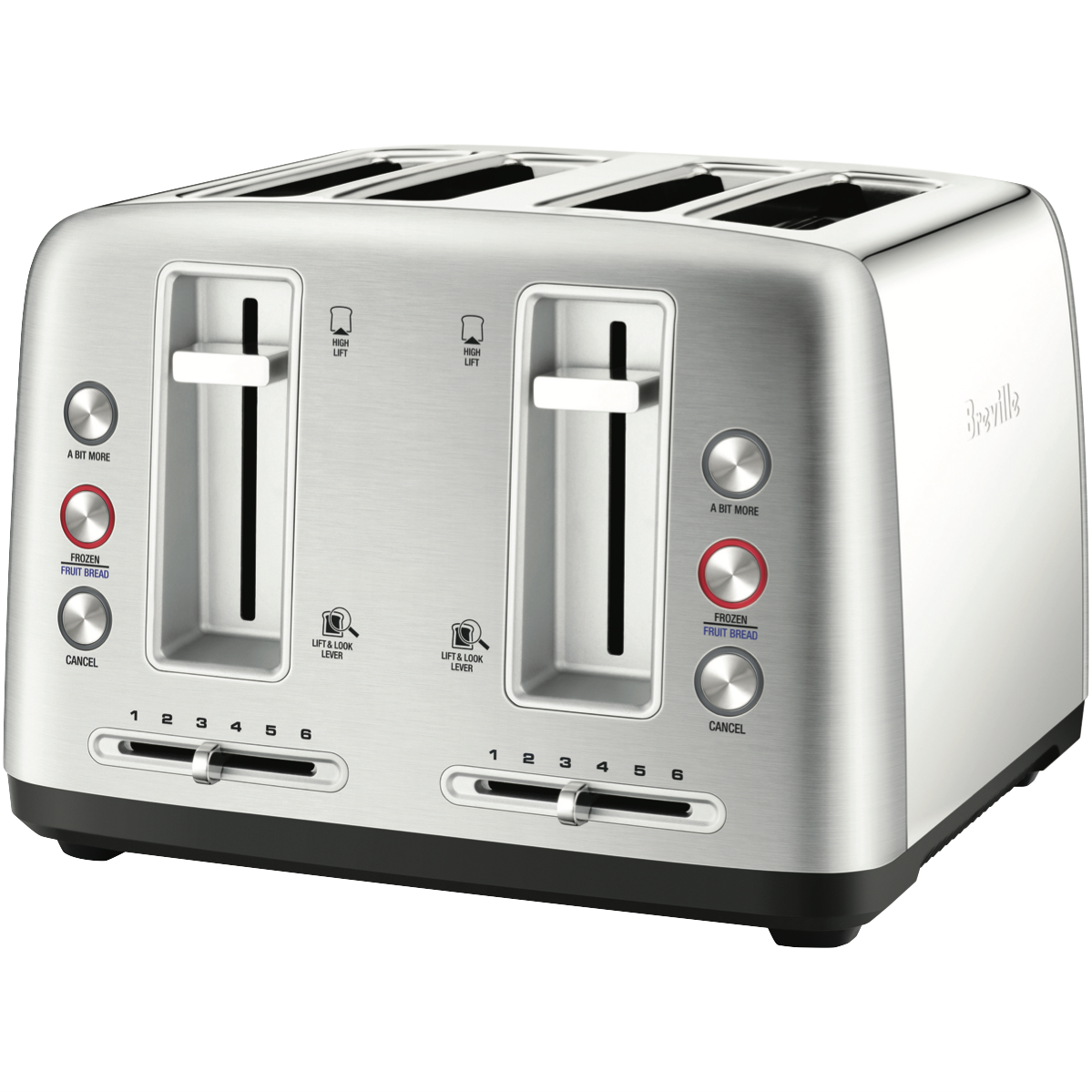Start your mornings right with the sleek stainless steel Breville The Toast Control 4 Slice Toaster. This 1800 watt 4-slice toaster features unique Fruit Bread & A Bit More settings to perfectly toast a variety of breads. The extra wide and deep self centering slots accommodate different sizes and ensure even browning. With 6 browning control settings you can achieve your ideal level of toastiness every time. Defrost frozen bread or reheat toast with just a push of a button. The high lift lever and removable crumb tray allow for easy access and cleaning. Enjoy convenience and versatility with this quality Breville toaster that will be a welcome addition to any kitchen. The manufacturer's part number for this product is LTA670BSS. Bring home delicious toast with The Toast Control 4 Slice Toaster today.