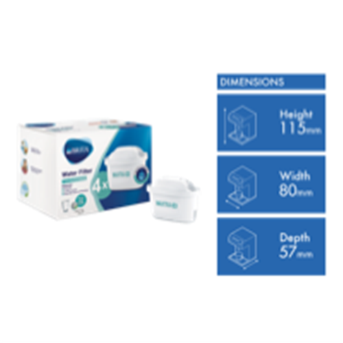 The Brita MAXTRA+ Universal 4 Pack provides a convenient water filtration solution for any home. Simply attach one of these filters to your Brita jug or cask to enjoy cleaner fresher water right from the tap. This 4 pack of MAXTRA+ filters helps reduce chlorine metals minerals and other impurities that can affect the taste and quality of your drinking water. With the ability to filter up to 150L per filter you can enjoy up to four months of filtered water with each MAXTRA+ filter. Compatible with all Brita jugs and casks excluding the Classic range these universal filters make it easy to improve the quality of water you drink every day. The MAXTRA+ incorporates Brita's advanced filter technology into a compact filter design that fits neatly onto your water jug. Give your family the gift of great-tasting water with the Brita MAXTRA+ Universal 4 Pack. Experience the difference filtered water can make. The manufacturer's part number for this product is 1028078. Consider the Brita MAXTRA+ 4 Pack for cleaner drinking water.