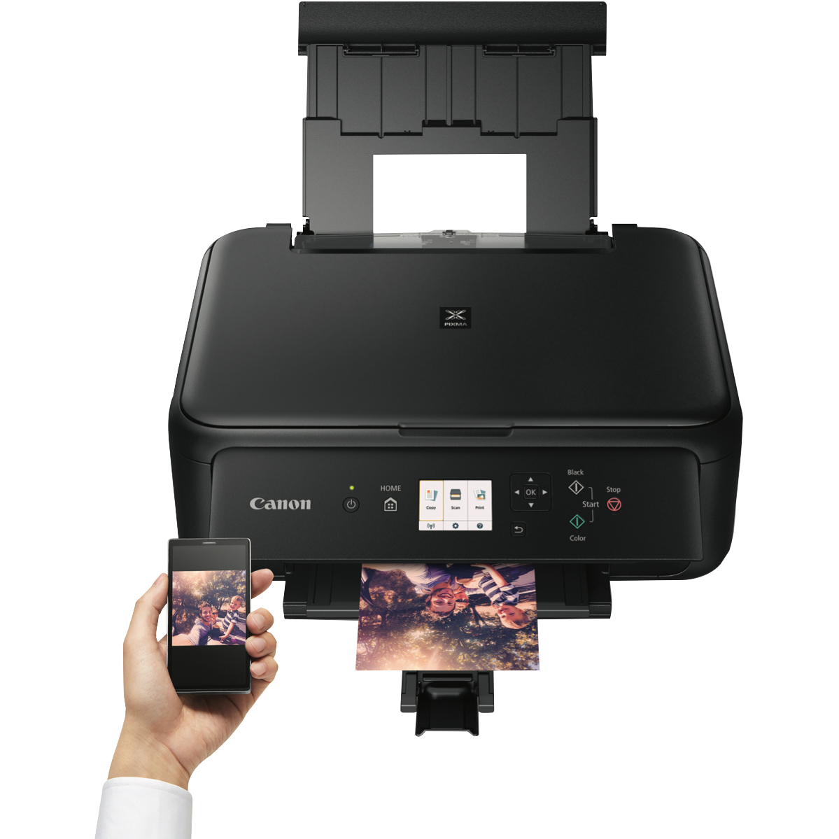 Achieve convenient wireless printing at home with the Canon PIXMA TS5160BK Inkjet Multifunction Printer. This versatile all-in-one lets you print scan and copy documents and photos with ease. Equipped with built-in Wi-Fi you can print from laptops smartphones and tablets wirelessly. It uses individual PG-640 black and CL641 colour ink cartridges to deliver lab-quality photos and sharp text. You'll achieve print speeds of up to 13ipm in black and 6.8ipm in colour. Scan and copy at up to 1200 x 2400dpi for crisp clarity. Compatible with AirPrint and Google Print for flexible mobile printing. Paper handling is flexible with the 100 sheet tray supporting sizes from A4 to envelopes and 4x6in photo paper. Measuring just 425mm wide this compact printer is easy to fit on your desk at home or in a small office. The PIXMA TS5160BK comes complete with Canon's 1 year warranty for added peace of mind. The manufacturer's part number for this product is TS5160BK. For easy wireless printing at home consider the Canon PIXMA TS5160BK today.