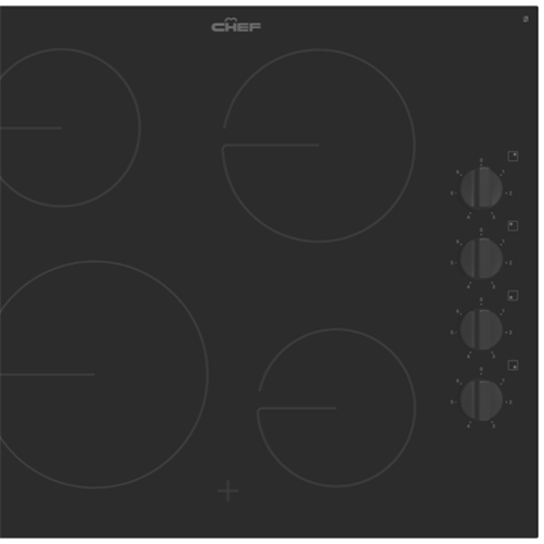 The timeless black ceramic glass surface and black control knobs of this Chef 60cm Ceramic Cooktop CHC642BB keep your kitchen forever on trend. Four cooking zones with controls to the side offer maximum cooking space and quick and effortless changes to the heat intensity at any given time. Whip up sizzling stir-fry creations on the powerful 2.3kW zone as accompanying dishes simmer or boil to the side. Hot surface indicators let you know when the surface is still too hot to touch after cooking. Cleaning this Chef cooktop is a breeze thanks to the smooth glass surface that can be simply wiped down with a damp cloth when it's safe to do so.