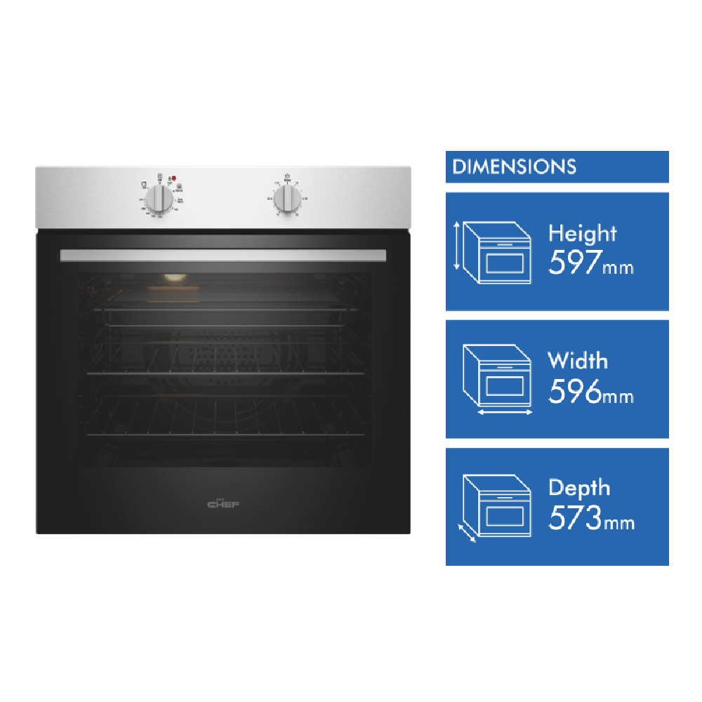 • Chef 60cm Electric Oven Stainless Steel with 10amp Plug