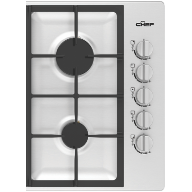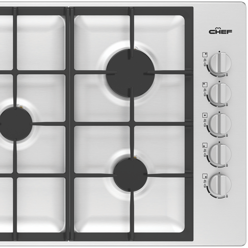 Experience cooking freedom thanks to the spacious layout of this Chef 90cm Gas Cooktop Stainless Steel CHG954SC with four cooking zones. Create high-powered stir fries on the wok burner as side dishes simmer and boil in pots and pans of various sizes. Controls are positioned to the side for safety; eliminating the need to reach over hot pots and pans whilst offering quick and easy changes to the heat intensity at any given time. Experience one-push start ignition every cook. Plus Chef's cast iron trivets keep your pots and pans stable as well as allowing for ease of movement between burners. For peace of mind this Chef cooktop has a Flame Failure safety feature that automatically shuts off the gas supply if the flame is unexpectedly extinguished.