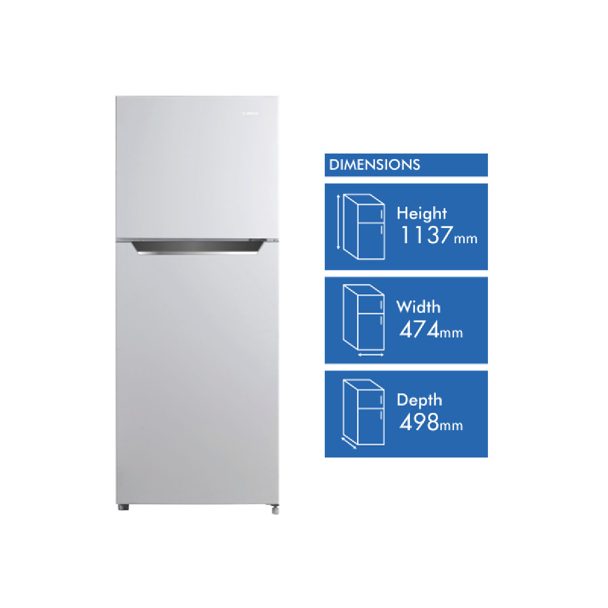 Discover the convenience of compact refrigeration with the CHiQ 118L Top Mount Refrigerator. This white fridge is designed to fit flush in tight spaces featuring a right hinge reversible door that opens to reveal 85L of cooling capacity and 33L of freezer space. With an energy efficient 3 star rating adjustable shelves and built-in bottle storage this 118L refrigerator makes an ideal addition to apartments offices garages and more. The sleek exterior and internal LED light create a modern look while the adjustable thermostat lets you customize cooling as needed. Measuring 474mm wide 1137mm high and 498mm deep the CHiQ 118L Top Mount Refrigerator provides ample chilled storage without occupying too much real estate. Backed by a 3 year manufacturer's warranty this refrigerator delivers reliable performance you can count on. The manufacturer's part number for this product is CTM118DW. Bring convenient refrigeration to any space with the CHiQ 118L Top Mount Refrigerator.