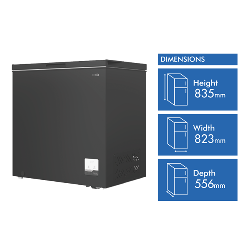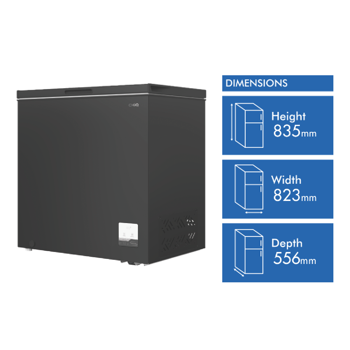 With its sleek black finish the CHiQ 199L Hybrid Chest Freezer offers efficient cold storage and organization for any home. This exclusive chest freezer features a generous 199 litre capacity with adjustable storage options like a sliding basket and wire mesh partition to keep your frozen goods neatly organized. The manual defrost design eliminates the hassle of frost build up while the top-opening door provides easy access to your frozen foods. An interior LED light illuminates the contents and a child safety lock gives parents peace of mind. The power efficient Inverter compressor helps minimize energy use for an impressive 5.5 star energy rating saving you money over time. Backed by CHiQ's 3 year warranty this chest freezer makes an ideal addition to any household that needs extra cold storage and organization. The manufacturer's part number for this product is CCF198BE. Seize the savings and convenience with the CHiQ 199L Chest Freezer today.