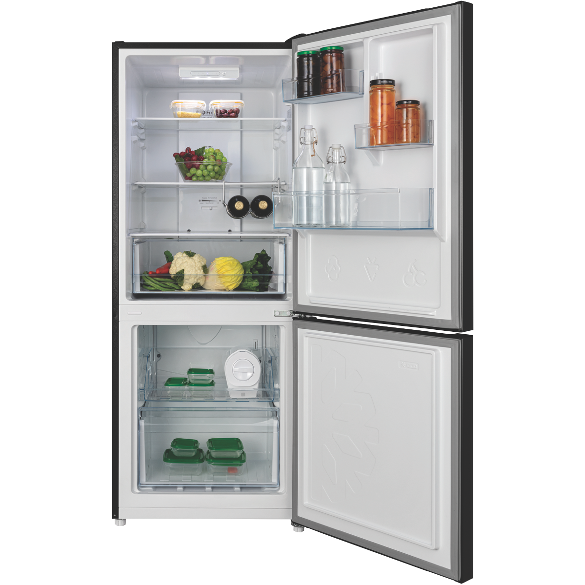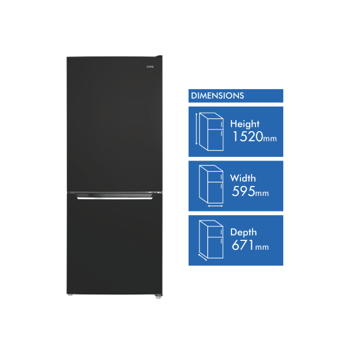 Bring home the sleek and stylish CHiQ 283L Bottom Mount Refrigerator your perfect kitchen companion. With its matte black finish this fridge effortlessly blends into any modern kitchen décor. Boasting a generous 283L total capacity including a 196L fridge and 87L freezer you'll have ample space to store all your fresh and frozen favorites. The frost-free design and multi-air flow system ensure even cooling throughout while the electronic temperature control allows you to easily adjust settings to your liking. Need to quickly chill drinks for unexpected guests? The fast cool function has you covered. The interior LED light illuminates every corner making it a breeze to find what you need. And with the reversible door you can customize the fridge to suit your kitchen layout. Backed by a 3-year manufacturer's warranty the CHiQ CBM280NB3 bottom mount refrigerator offers reliable performance and peace of mind. Upgrade your kitchen with this stunning and practical appliance that measures 595mm wide 1520mm high and 671mm deep.