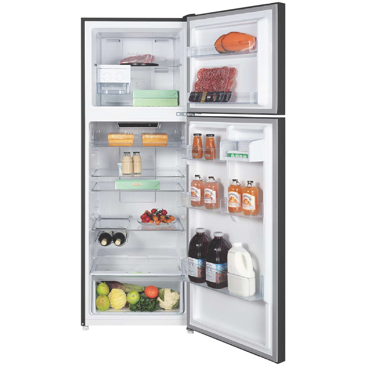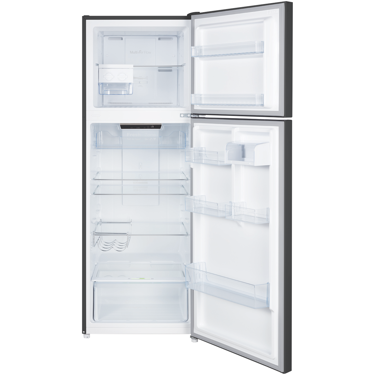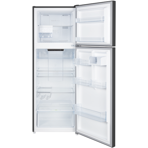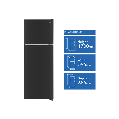 Take control of your kitchen with the CHiQ 348L Top Mount Refrigerator. This stylish black fridge offers impressive and efficient cooling for busy families. Featuring an eco-friendly 5 star energy rating and a spacious 348 litre capacity across 270 litres in the fridge and 78 litres in the freezer this top mount model provides ample chilled storage for fresh food and frozen goods. The multi air flow and fast cooling capabilities ensure optimum temperatures throughout while the inverter compressor helps minimize energy consumption. With reversible doors interior LED lighting and handy storage features like the humidity controlled crisper and door alarm it's the ideal fridge for any home. Additional highlights include the frost free operation which prevents icy buildup and the tempered glass shelves that safely contain spills. Covered by a 3 year manufacturer's warranty the CHiQ CTM347NB5E fridge makes refrigeration simple. Order now to keep food fresh for less energy.