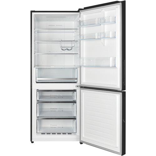 Step into a spacious new world of food freshness with the CHiQ 396L Bottom Mount Refrigerator. This right hinge fridge comes equipped with a generous 396 litre total capacity featuring a sizable 281 litre refrigerator and 115 litre freezer. Maintaining optimal temperatures is a breeze thanks to its energy efficient 5 star rating Inverter System and Multi Air Flow cooling. The sleek black exterior houses must-have conveniences like a LED display fast freeze function humidity control crisper and reversible door hinges. With bright interior lighting and plenty of storage for all your family's grocery needs this CHiQ refrigerator aims to please. It even includes a 3 year manufacturer's warranty for added peace of mind. The manufacturer's part number for this product is CBM393NB3. Bring home the convenience of a bottom mount fridge that keeps food fresher for longer.