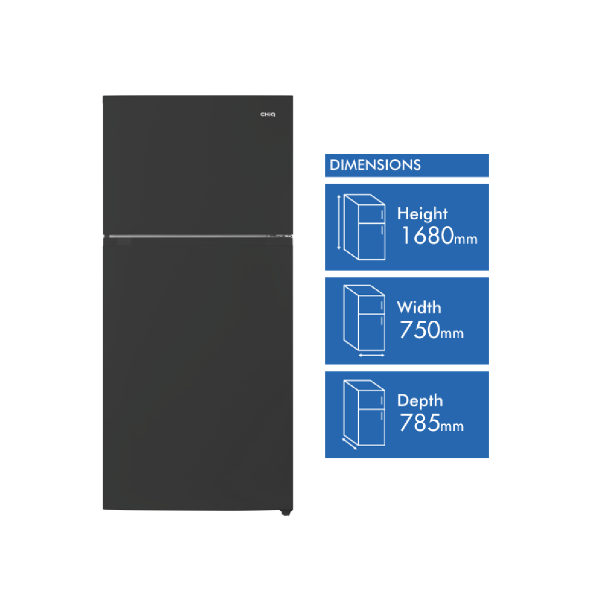 Discover the perfect fridge for your home with the CHiQ 515L Top Mount Refrigerator. This spacious top mount fridge comes in a sleek black finish that will seamlessly blend into any modern kitchen. With a total capacity of 515L including a generous 386L fridge and 129L freezer you'll have plenty of room for all your fresh food essentials. The right hand hinged reversible door provides flexible installation options. The 4 star energy rating ensures this fridge performs efficiently to help reduce your energy bills. Multi Air Flow technology and an Inverter System maintain optimal temperatures while the FrostFree feature prevents icy buildup in the freezer. Interior LED lighting illuminates the cavity brightly so you can easily find what you need. Electronic controls and a stylish black interior finish off this fridge's modern aesthetic. With a width of 750mm height of 1680mm and depth of 785mm this top mount refrigerator is designed to suit most standard kitchen spaces. The manufacturer provides a 3 year warranty for added peace of mind. Conveniently organize your groceries with the storage flexibility of the CHiQ 515L Top Mount Refrigerator. The manufacturer's part number for this product is CTM514NB3. Discover it today for your home.