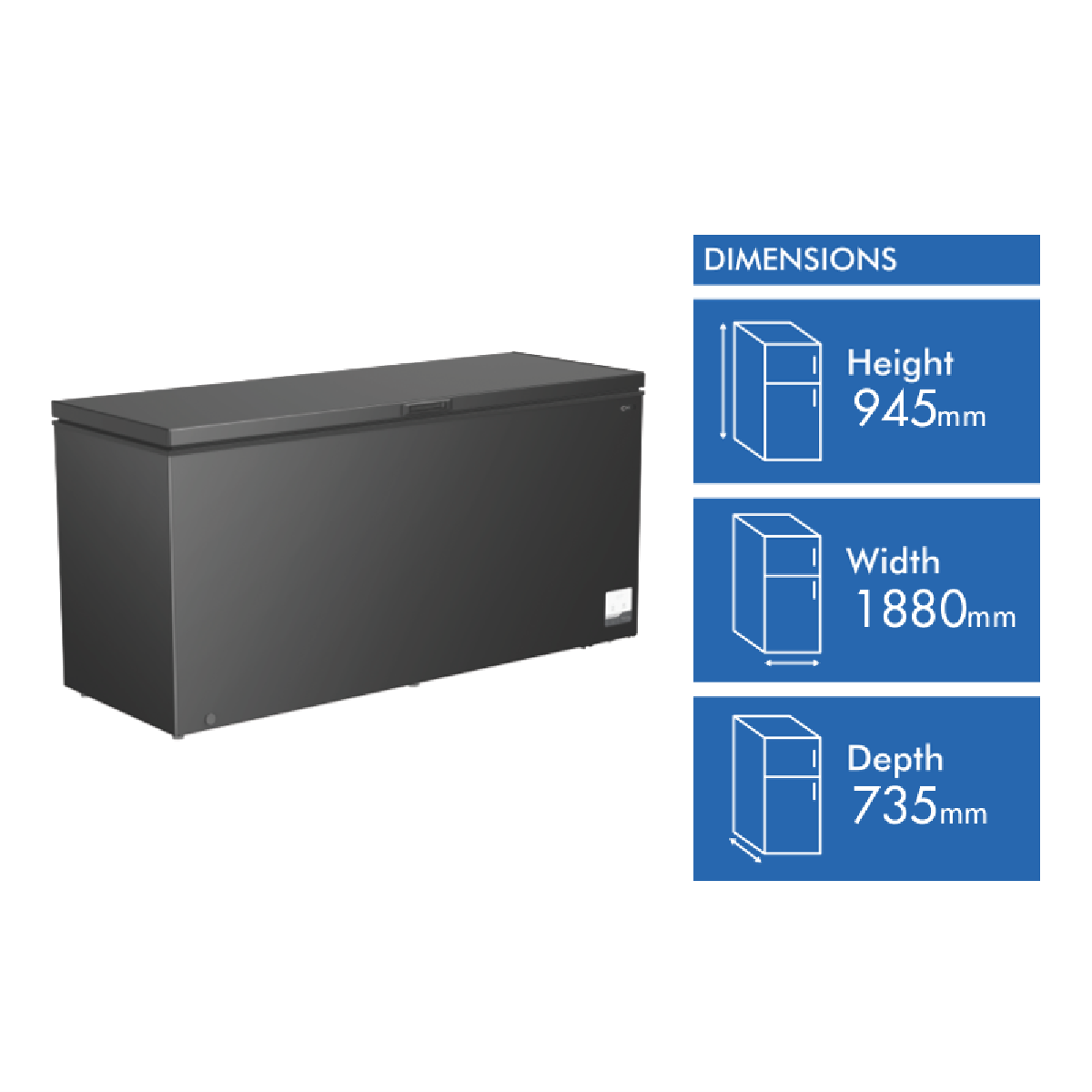 This exceptional 700L chest freezer from CHiQ is the perfect addition to any home with its generous capacity providing ample storage for bulk frozen foods and long-term meal prepping. The sleek black finish looks fantastic in any kitchen while the innovative inverter compressor system ensures energy efficiency. Keep your food frozen for longer without frost build up thanks to the manual defrost functionality. The interior LED light allows you to easily find items no matter how full the freezer is. Three smooth-gliding removable baskets help you organise meats baked goods and more. For added safety and efficiency the electronic control panel and child lock allow you to lock in the ideal temperature while keeping little fingers out. With convenient features like the switch to convert from fridge to freezer and six roller wheels for easy manoeuvrability this freezer makes freezer organisation easy. Exclusive to the Good Guys the CHiQ chest freezer comes with a 3 year warranty plus 2 years with registration for your peace of mind.