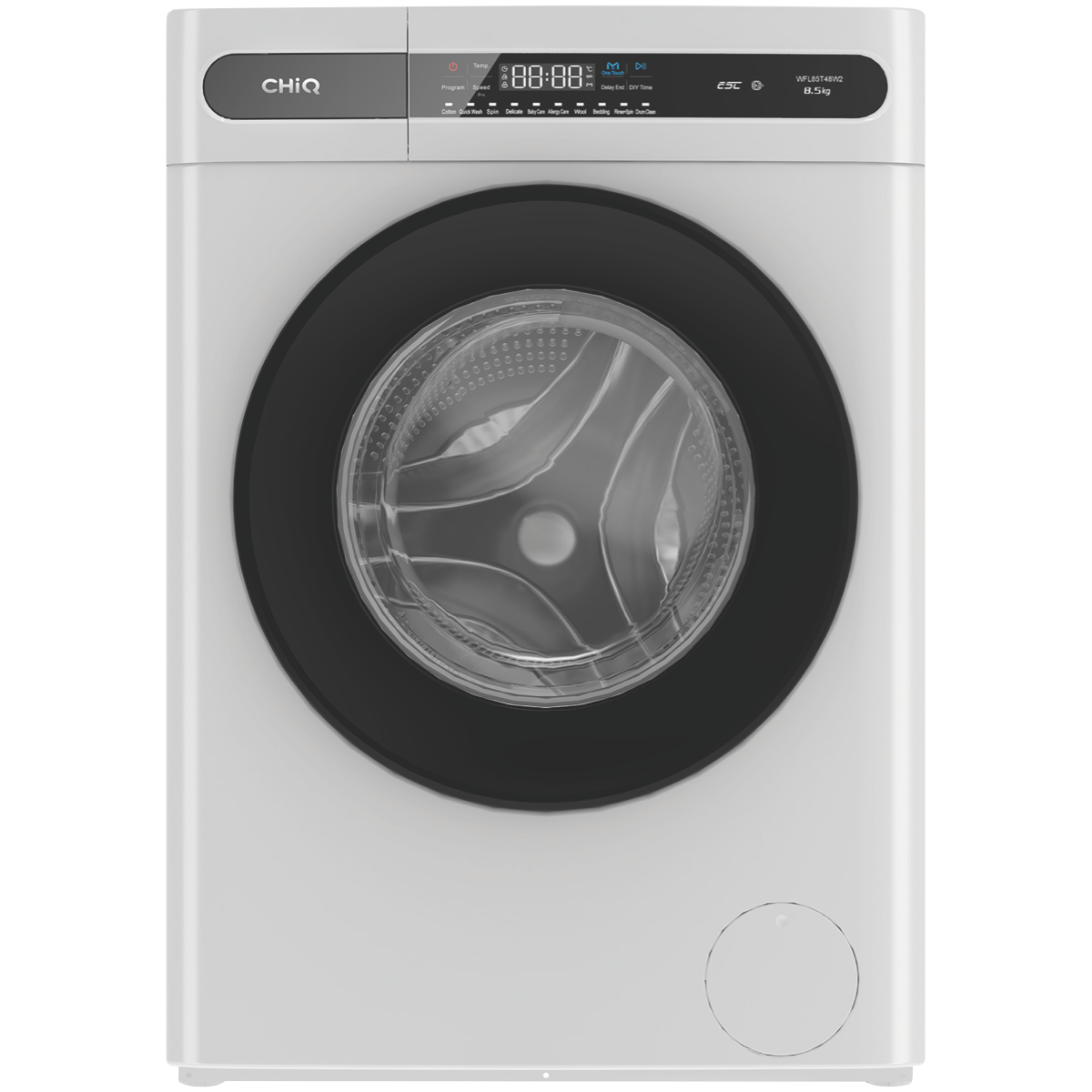 Take your laundry routine to the next level with the CHiQ 8.5kg Front Load Washer. This powerful front loading washing machine packs a punch with a generous 8.5kg washing capacity perfect for handling large loads with ease. The sleek white finish will complement any laundry while the 4 star energy rating ensures energy efficient washing. With 11 smart programs including Quick Wash Delicate and Allergy Care you'll enjoy customized cleaning for all fabric types. The adjustable temperature control child lock and fuzzy logic feature give you total control of the wash for peace of mind. Best of all the One Touch function takes the guesswork out of laundry day automatically selecting the ideal wash cycle with a single touch. Bring exceptional washing performance home with the CHiQ Front Load Washer. The manufacturer's part number for this product is WFL85T48W2. Transform your laundry experience today.