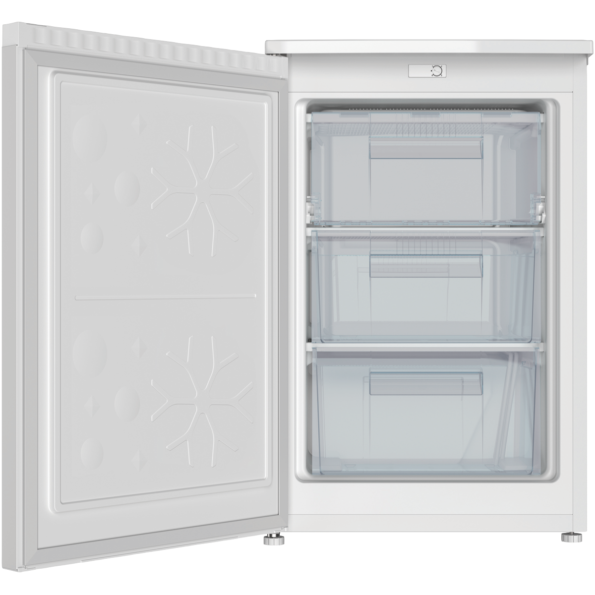 Make more room in your kitchen with the CHiQ 85L Upright Freezer. This white freezer offers 85 litres of storage capacity across two drawers providing ample space to stock up on frozen foods. The reversible door swings left or right for convenient placement while adjustable feet provide a stable foundation. Maintaining an energy rating of 3.5 stars this upright freezer runs quietly and efficiently. The low noise design allows it to operate unobtrusively. With its compact 549mm width and 845mm height the freezer fits in tight spaces. The two drawers inside the 557mm deep cabinet offer easy access and organization for meats prepared meals ice cream and more. The CHiQ Upright Freezer's 3 year manufacturer's warranty provides peace of mind with this long lasting appliance. The manufacturer's part number for this product is CSF085DW. Give your kitchen extra frozen storage with the CHiQ 85L Upright Freezer today.