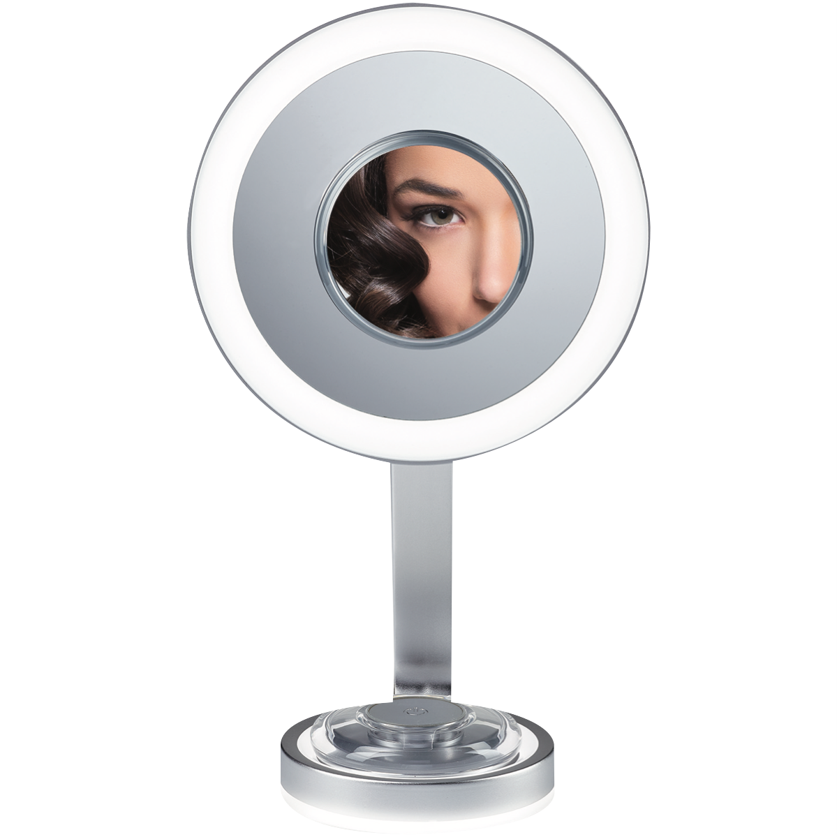 The Conair Illuminations 2-in-1 Mood Light LED Mirror is the perfect beauty accessory to brighten your mornings and evenings. With an impressive 23cm diameter this round silver mirror features lifetime energy saving LED bulbs with low medium and high settings to provide customized lighting for flawless makeup application skin analysis and grooming. The innovative night light feature offers two brightness levels allowing you to maintain visibility when the lights go out. Complete with an AC adapter this LED mirror comes with a 1 year manufacturer's warranty for peace of mind. The manufacturer's part number for this product is CBEMLRGA. Check out this must-have mirror to illuminate your beauty routine today.