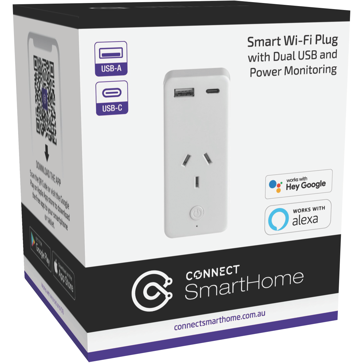 Take control of your home appliances with the Connect SmartHome Smart Wi-Fi Plug with Dual USB Ports. This clever plug turns ordinary outlets into smart voice-controlled ports to manage lamps fans and more right from your phone. With built-in Wi-Fi and compatibility with Google Assistant and Amazon Alexa just link this plug to your home network and use simple voice commands to switch devices on or off set schedules and monitor energy use even when you're away. The sleek white design blends into any decor while the top-mounted USB-A and USB-C ports let you conveniently charge phones tablets and other devices. Operate wirelessly via the user-friendly Laser SmartHome app and maximize convenience with hands-free voice control. With remote access and scheduling options this smart plug makes it easy to save energy and add automation to your home. The manufacturer's part number for this product is CSH-PLGPM-AC1. Bring voice-controlled smart home technology to your lighting appliances and electronics today.