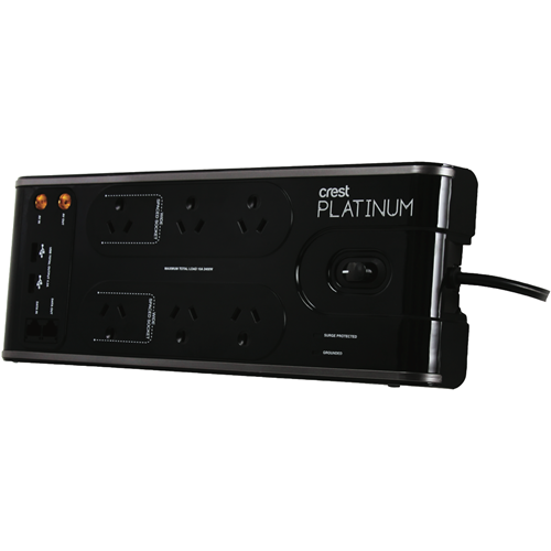 Safeguard your electronics and appliances from power surges and spikes with the Crest 6 Socket AV Surge Protect Powerboard. This powerboard features six widely spaced outlets to accommodate chunky plugs and transformers along with advanced 240V surge protection up to 3600 joules to keep your devices safe from electrical damage. The fire proof MOV protection provides an extra layer of safety. With a 10 year warranty for peace of mind this powerboard is the ideal solution for protecting home entertainment systems computer equipment small kitchen appliances and more. The manufacturer's part number for this product is PWU06905C. Shop now for a surge protector you can rely on to guard your gadgets from power fluctuations.