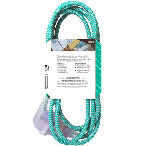 Get power where you need it with the Crest Decord Braided Extension Lead. This 5 meter extension cord provides convenient reach for appliances tools and devices. The durable braided jacket protects against abrasions while the multiple outlets offer versatile connectivity. With a 1 year warranty you can plug in with confidence. Whether you're working on projects or need extra length to access outlets this lead extends your power. The Crest reliability keeps you powered up. The manufacturer's part number for this product is WWDECEX5. For durable and flexible extension choose the Crest Decord.