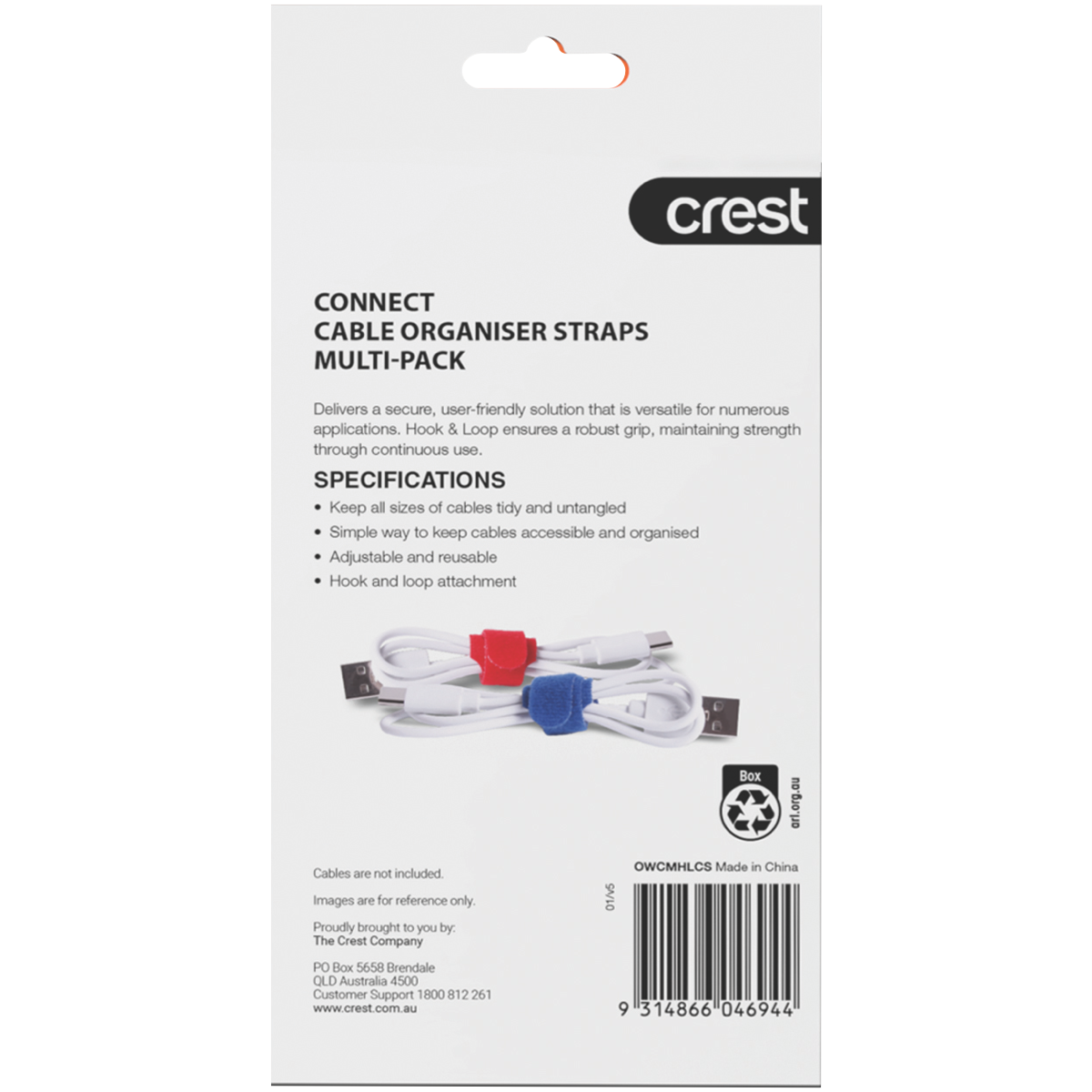 Tired of messy cables cluttering up your workspace? Crest's Hook & Loop Straps are just what you need to keep things tidy. This handy 6-pack comes in assorted colors so you can color-code your cords for easy identification. The hook and loop design makes them a breeze to use simply wrap them around your cables and they'll stay put. Plus they come with a 1-year manufacturer's warranty for peace of mind. Say goodbye to cable chaos and hello to a neater desk with Crest's Hook & Loop Straps (OWCMHLCS).