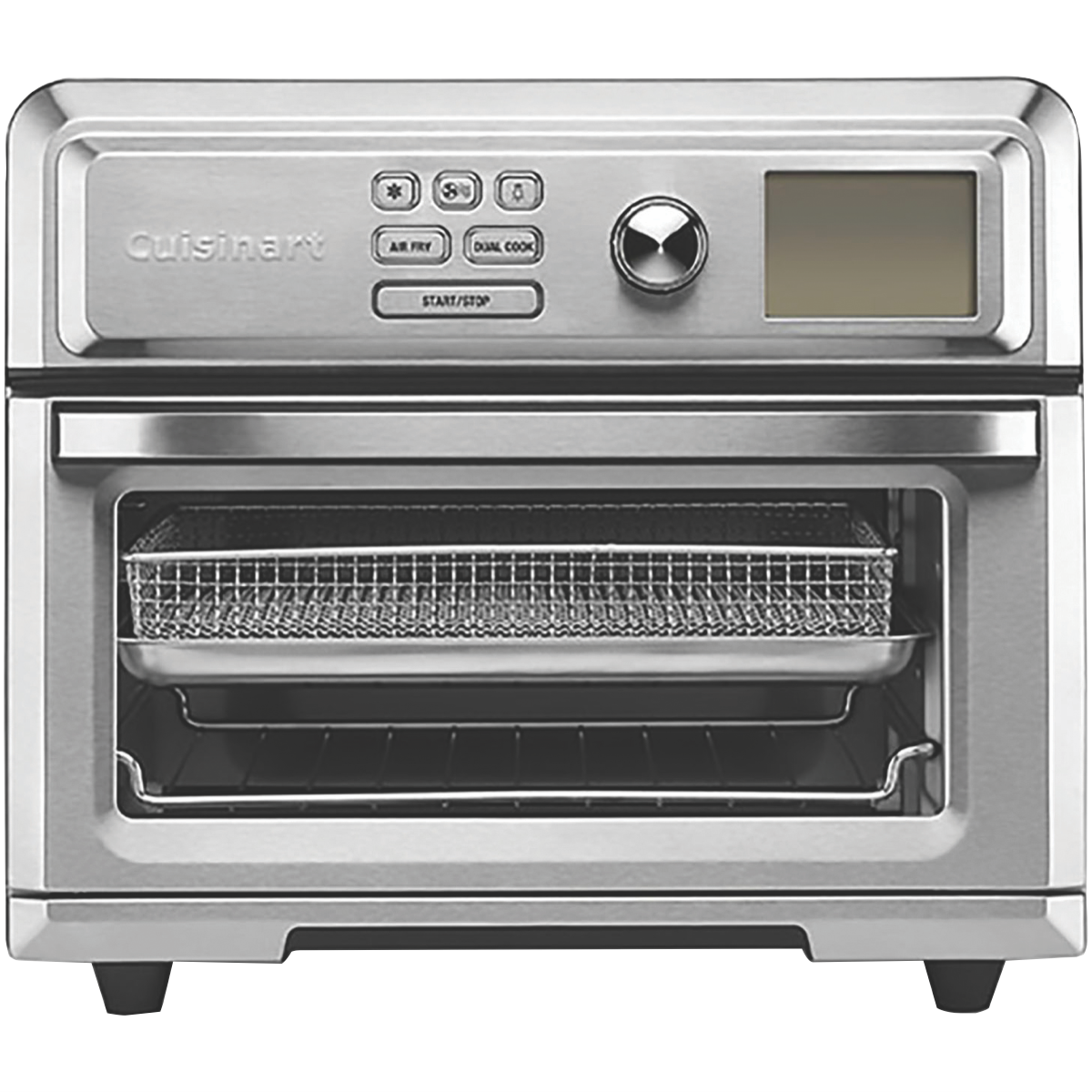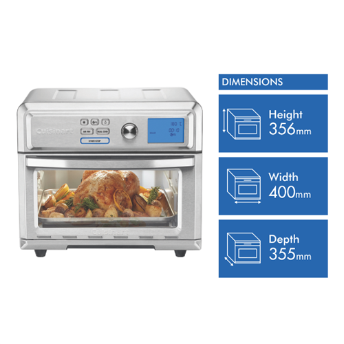 Transform your kitchen with the versatile Cuisinart Express Oven Air Fryer. This powerful 1630W appliance lets you air fry roast bake slow cook grill and more all in one compact brushed stainless steel unit. With its generous 17L capacity non-stick interior and reversible rack you can cook everything from crispy hot chips to juicy roasts for the whole family. The digital LCD and 12 presets make cooking simple while the integrated timer and auto shut-off give you peace of mind. Air fry with little to no oil and enjoy your favourite fried foods with up to 80% less fat. The super convection setting cooks food fast and evenly too. With so many modes like pizza breads and more this is the only oven you need on your countertop. Bringing professional results right to your home the Cuisinart Express Oven Air Fryer will transform mealtimes for good. The manufacturer's part number for this product is TOA-65XA. Check out the Cuisinart Express Oven Air Fryer today.